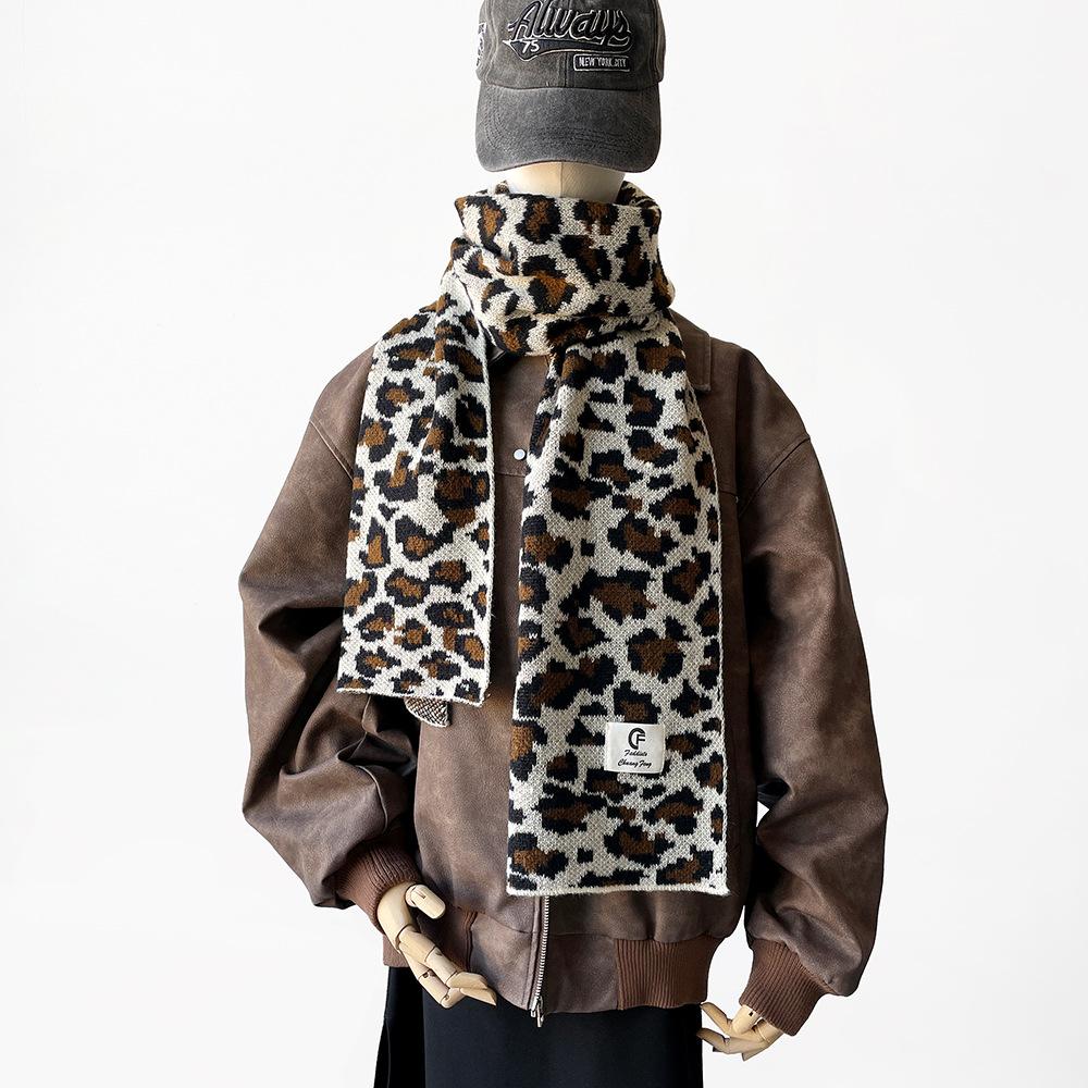 Нишевый вязаный шарф из шерсти с леопардовым принтом, женский осенне-зимний утолщенный шарф из смесовой шерсти, темпераментный, универсальный и теплый