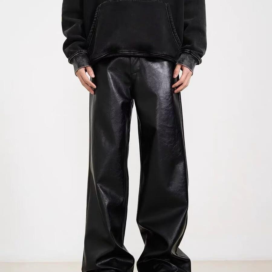 Мужские кожаные брюки прямого кроя в стиле ретро, в американском стиле - Повседневные, свободные, модные ПАНК-мода