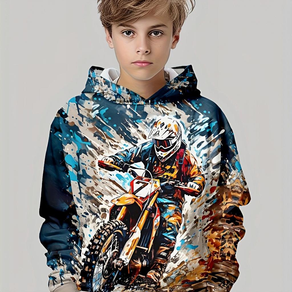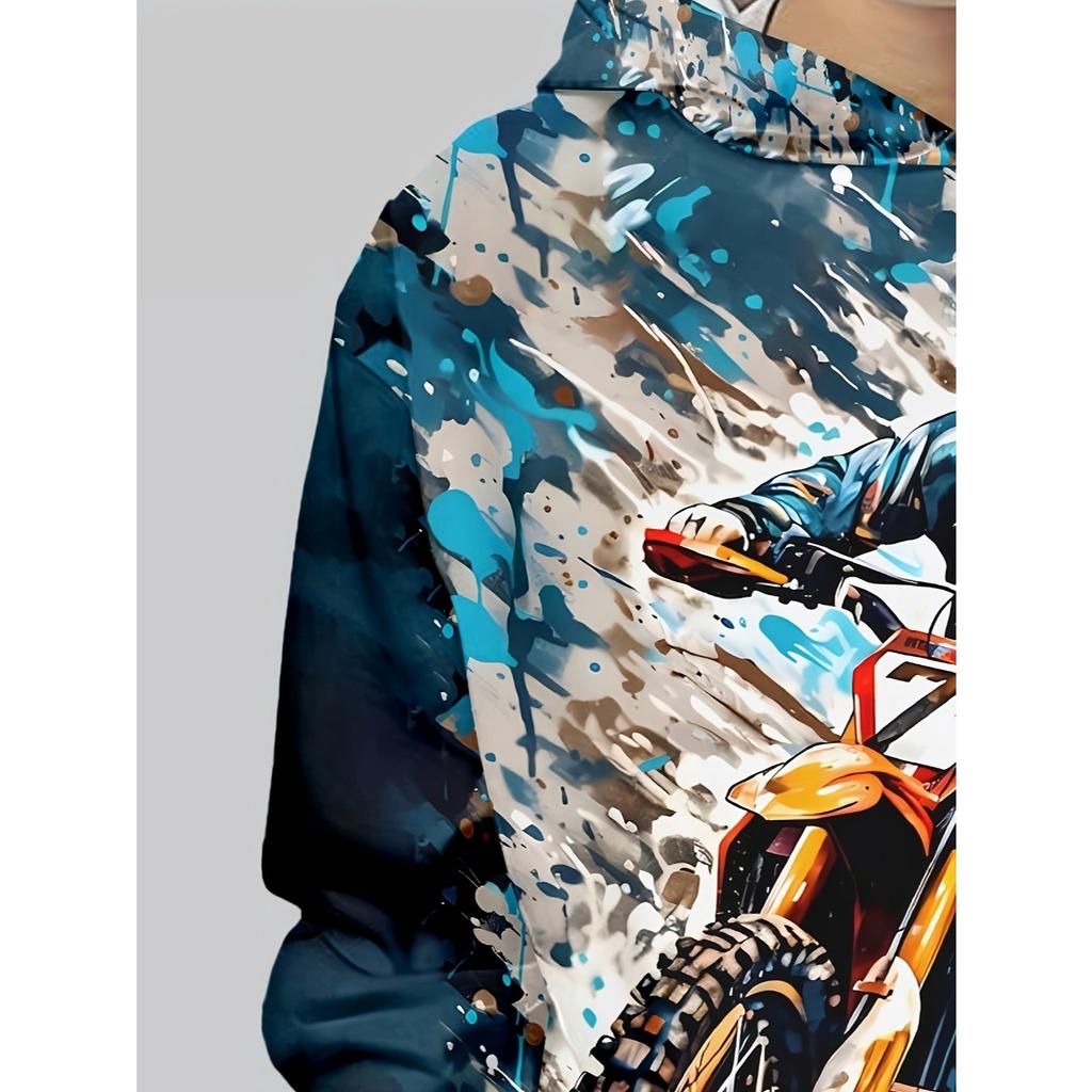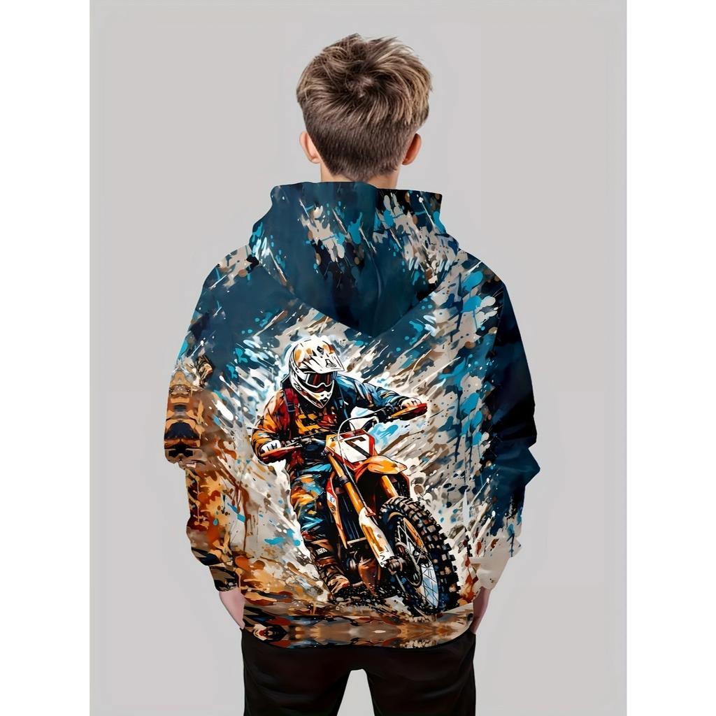 Крутая мотоциклистская толстовка с капюшоном для мальчиков, напечатанная на 3D-принтере, повседневная толстовка с длинными рукавами для мальчиков, весенне-осенняя толстовка