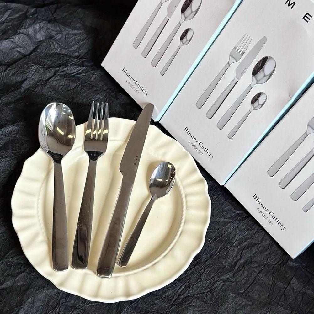 Утолщенный церемониальный набор из нержавеющей стали из 4 предметов: вилка, ложка, нож, ручка с противоскользящим покрытием, устойчив к коррозии и прост в уходе