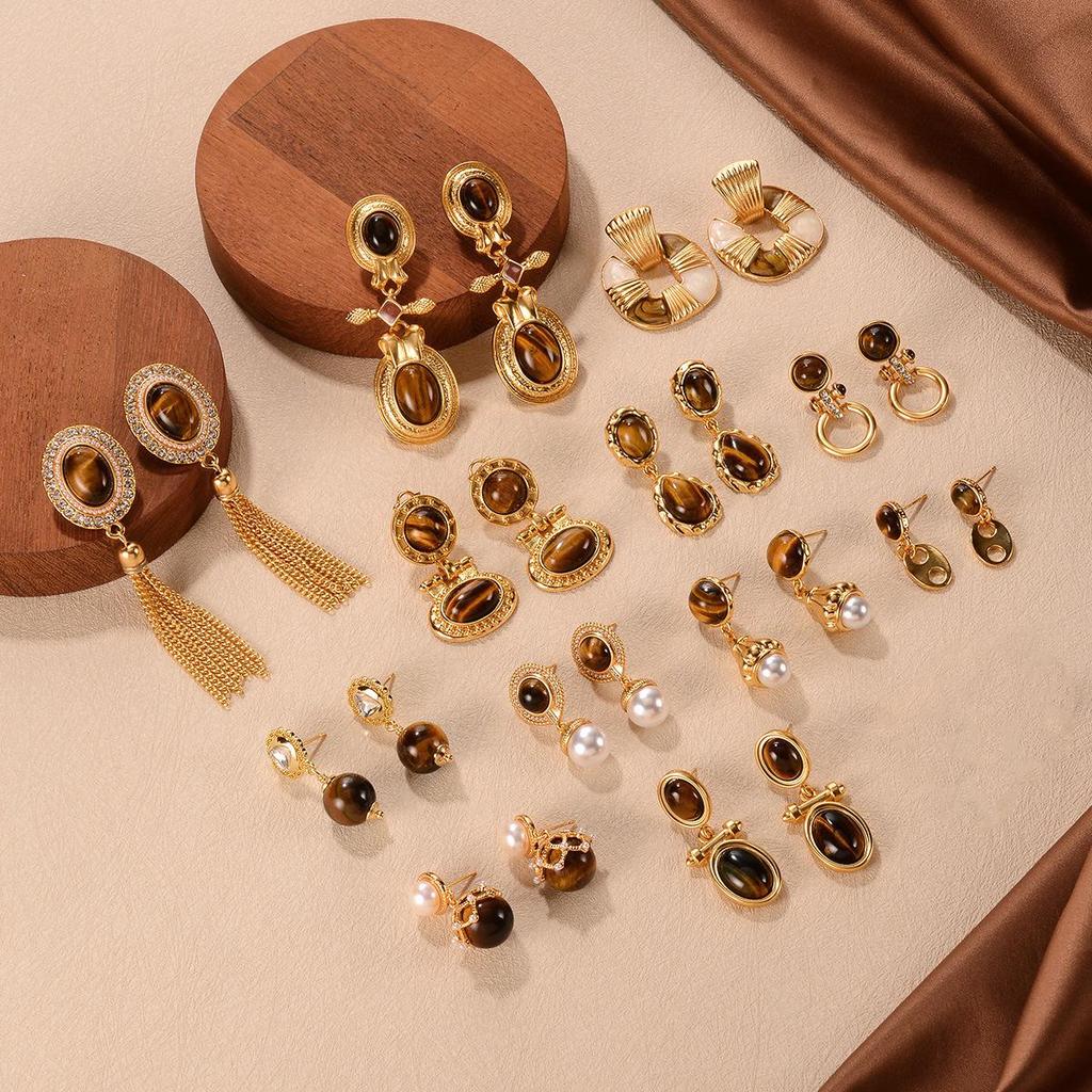 Maillard Осень/Зима Высококлассные Геометрические Серьги с Кисточками из Тигрового Глаза