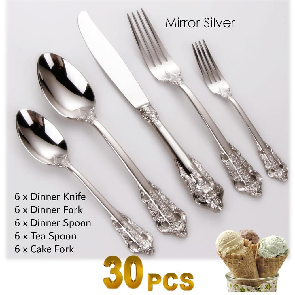 Обеденная вилка / Ложка, Десертная вилка / Ложка, Чайная ложка / Вилка для торта :Нержавеющая сталь 18-10 (304)