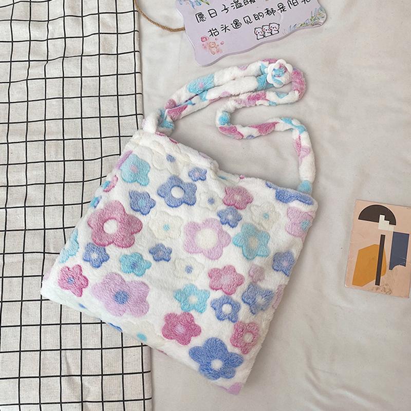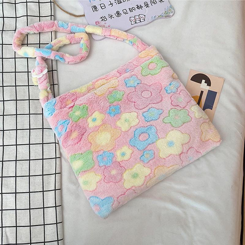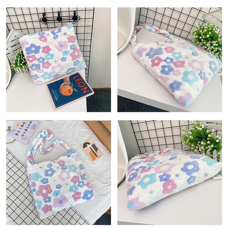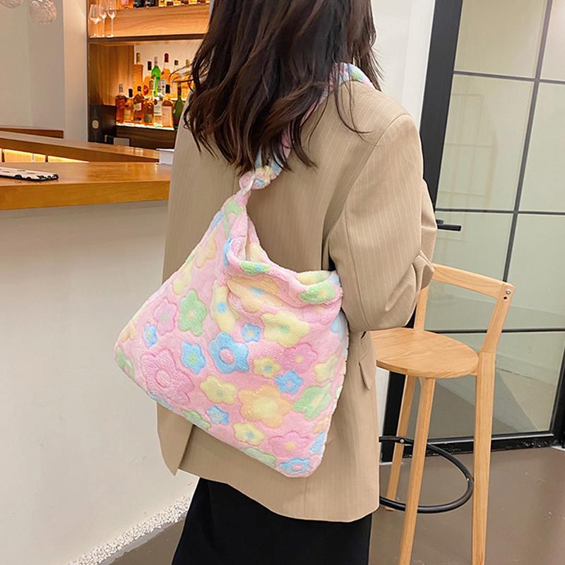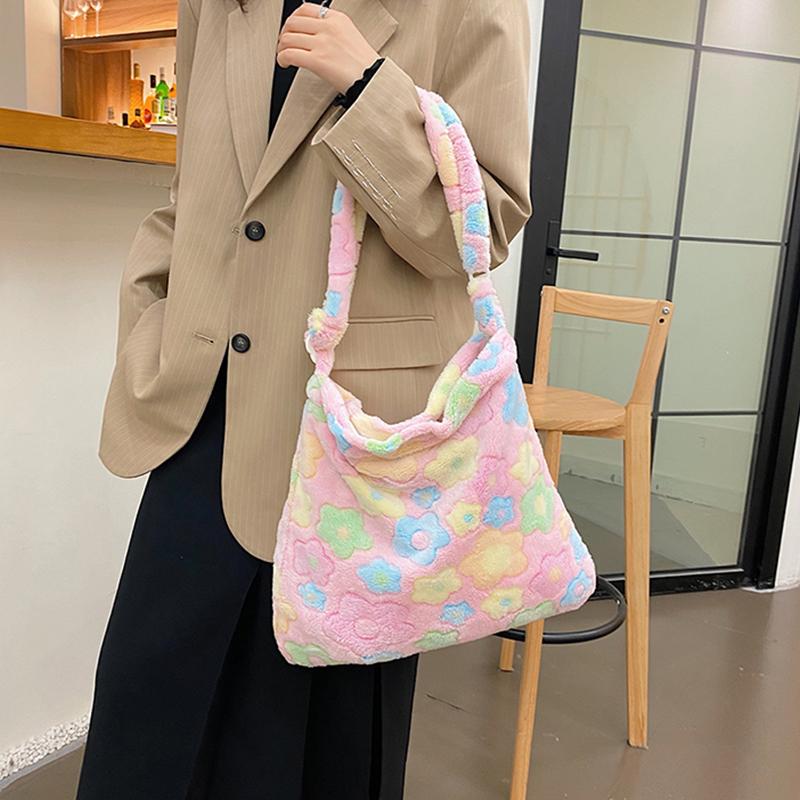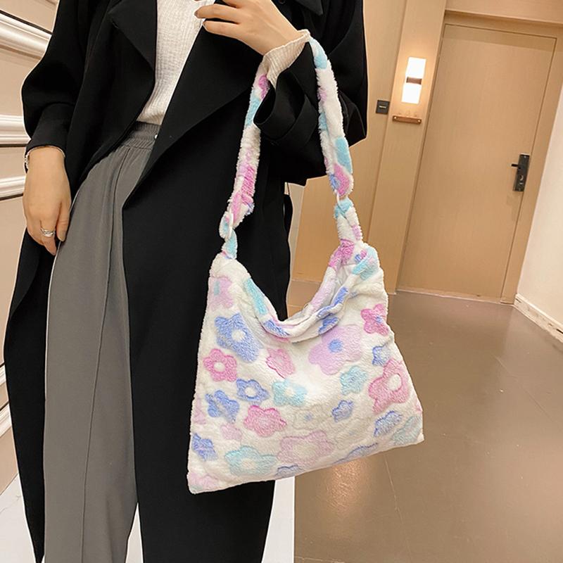 Модные сумки через плечо кроссбоди с цветами для женщин, мягкие плюшевые сумки-шопперы, женская сумка большой вместимости, теплые пушистые сумки-ведра CLE