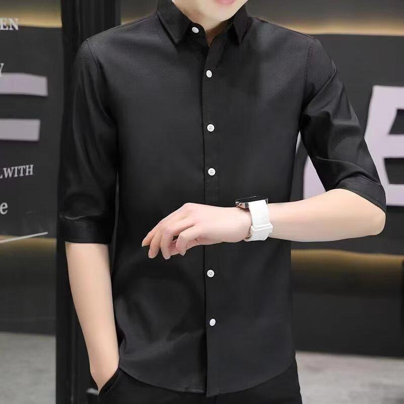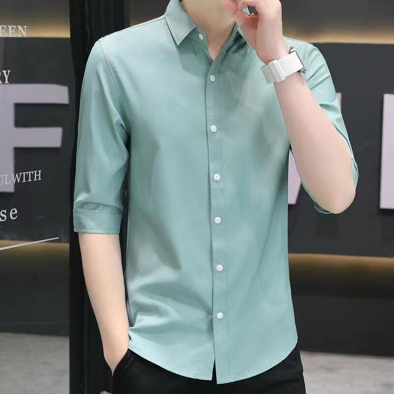 Мужская рубашка с рукавами пять четвертей свободного кроя 2025 - в японском гонконгском стиле, летняя повседневная куртка, модная и универсальная