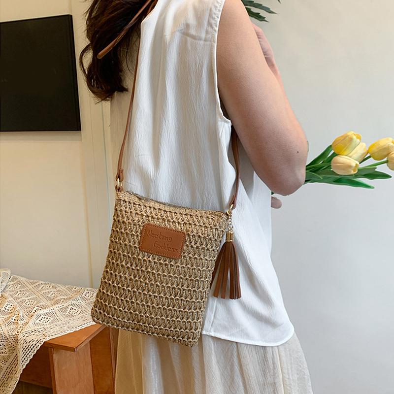 Straw Weaving Large Capacity Simple New Shoulder Bags Versatile Zipper Trendy Solid Color Women's Crossbody Bags CLE