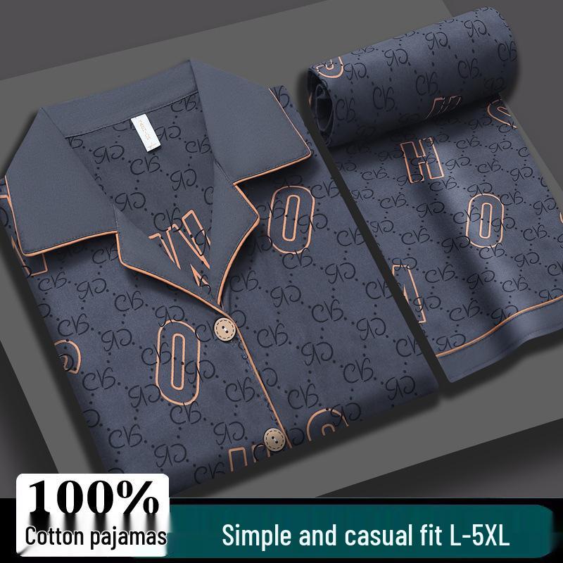 Мужской летний хлопковый пижамный комплект большого размера - Топ с коротким рукавом и длинные брюки для пап среднего возраста — купить товар онлайн с бесплатной доставкой по всему миру!