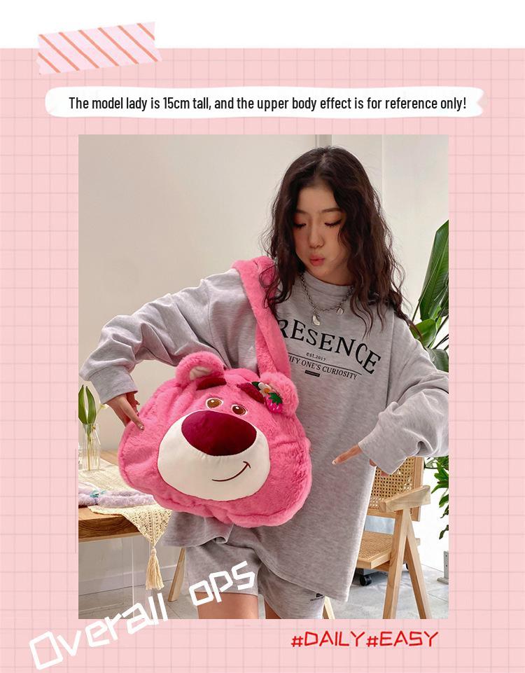 Плюшевая сумка Клубничного Мишки 2023 - Персонализированная вместительная милая сумка-тоут для девочек