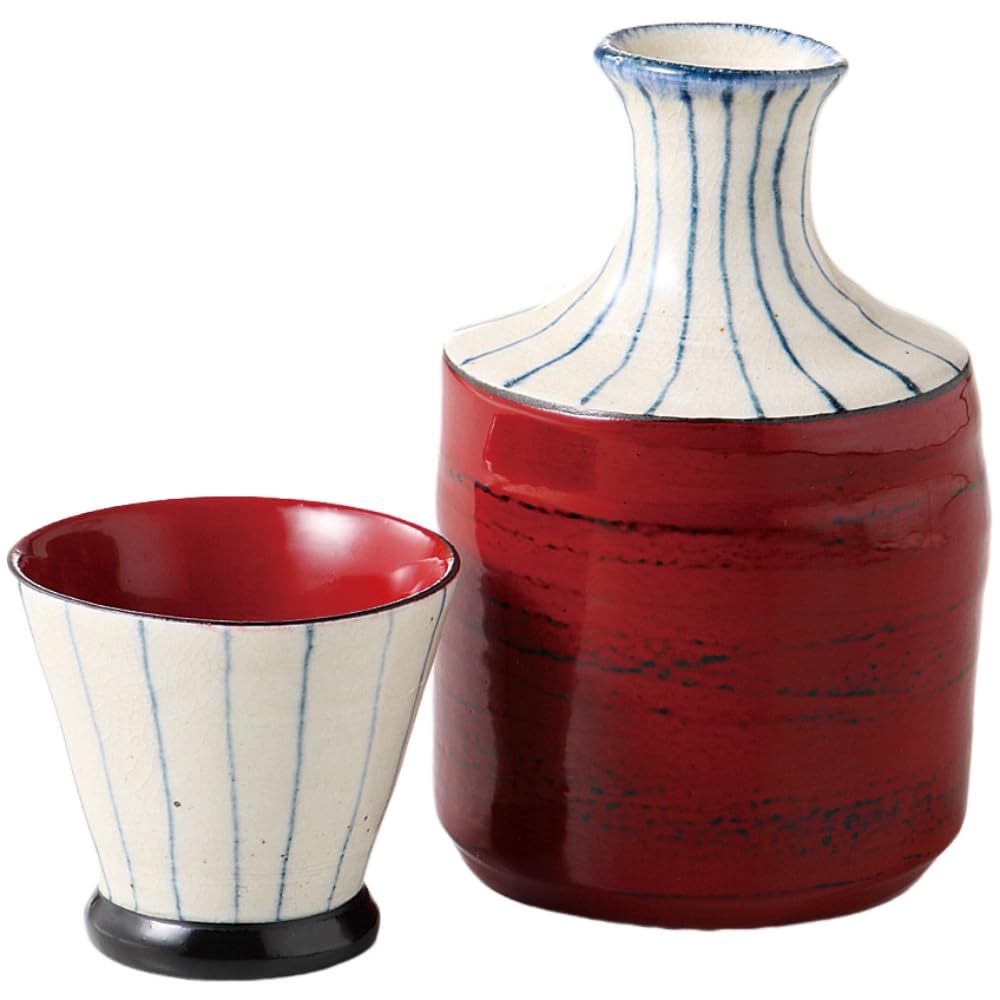 Sake Tokkushi and Sake Cup Diameter x Height Lacquered Ceramic Soukichi Sake Tokusa Negoro Mino Made in Japan Ale-net Set, Set, 7.8cm 12cm, 250cc,