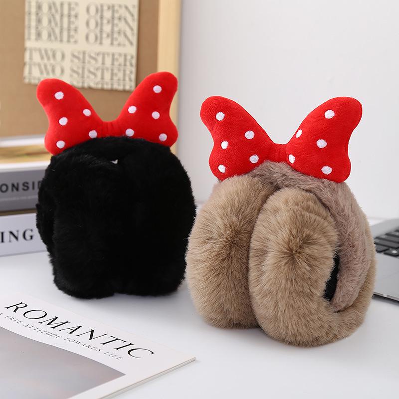 Складные плюшевые зимние наушники с милым бантиком - Толстые, теплые и морозостойкие