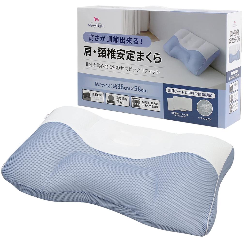 Merry Night Shoulder and Cervical Support Pillow, Approx. 38 x 58 cm, Urethane Sheet, Height Adjustable, Soft Pipe, Anti-Steam, Suitable for Back and