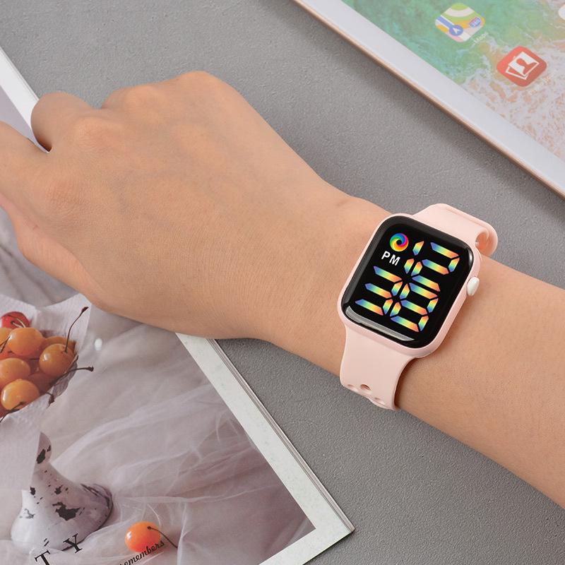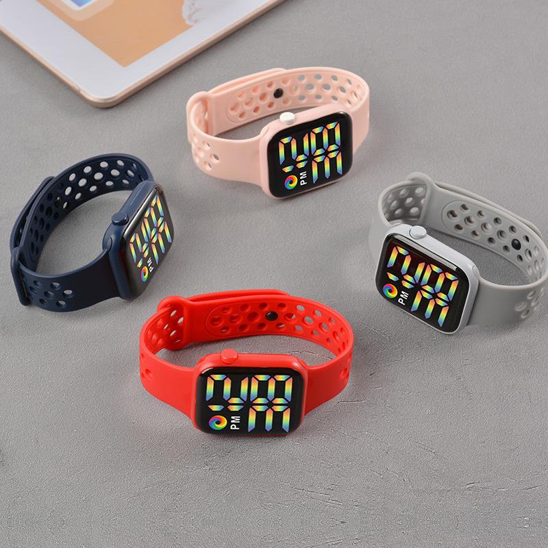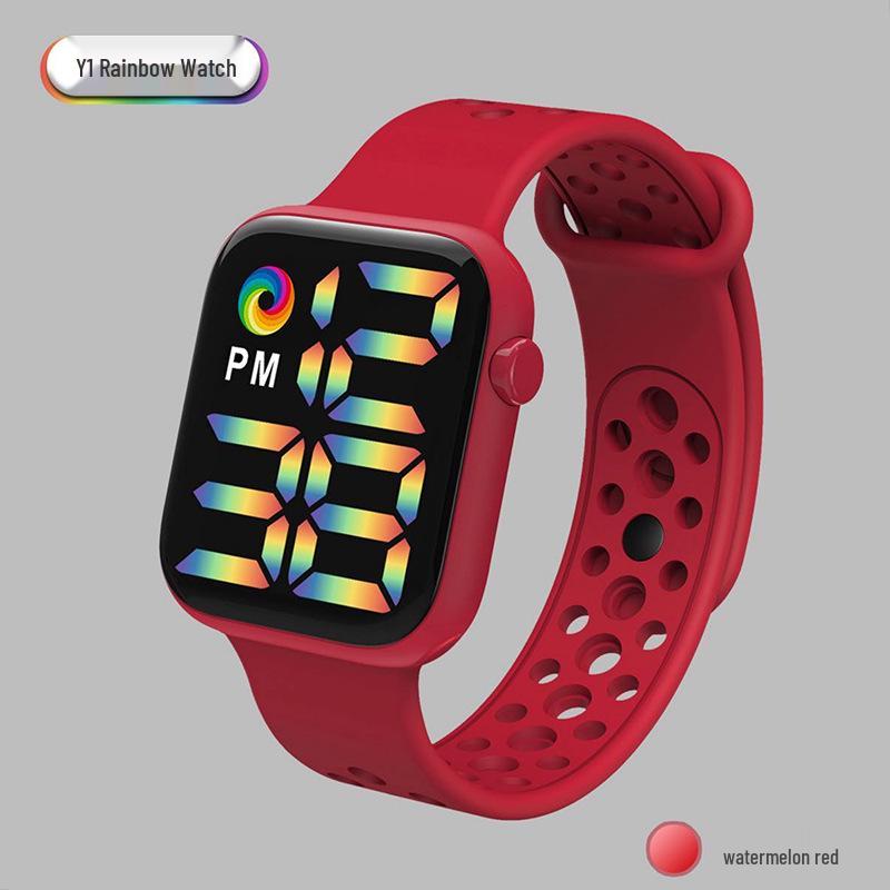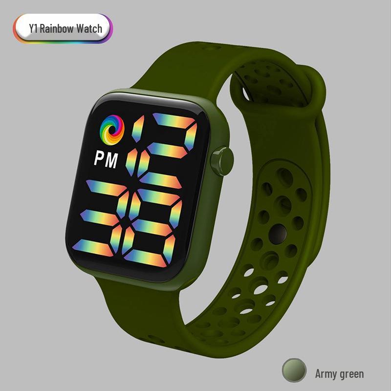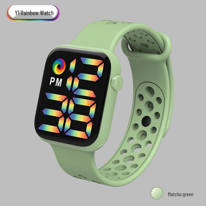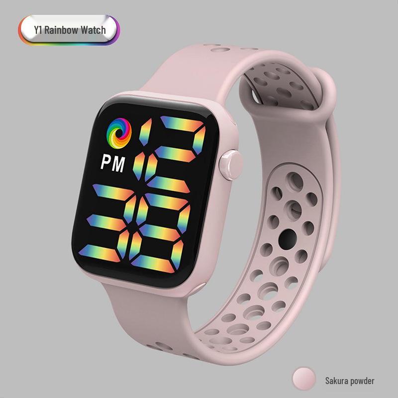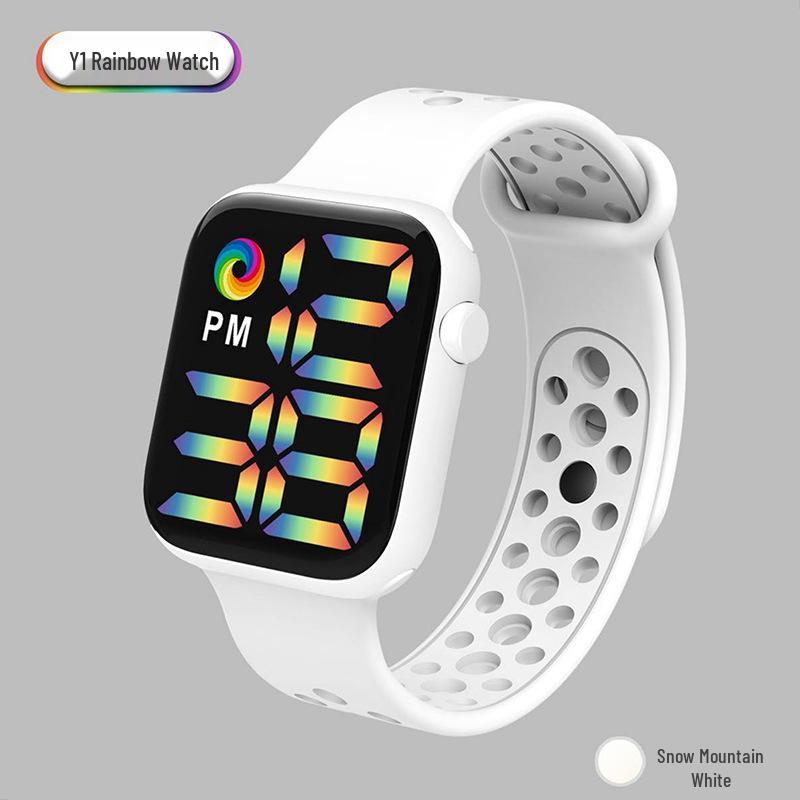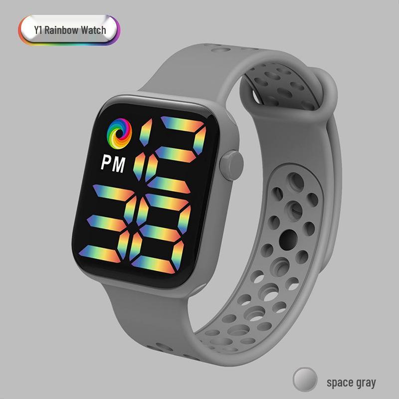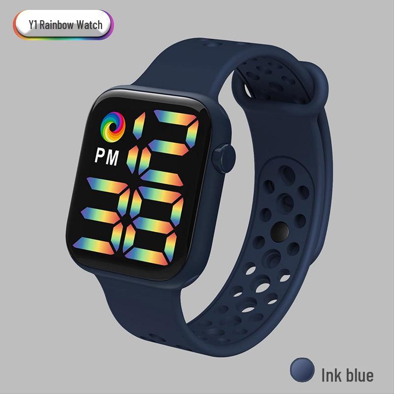 Спортивные часы Y1LED с цифровым радужным дисплеем, большим экраном и кнопочным механизмом для мужчин и женщин
