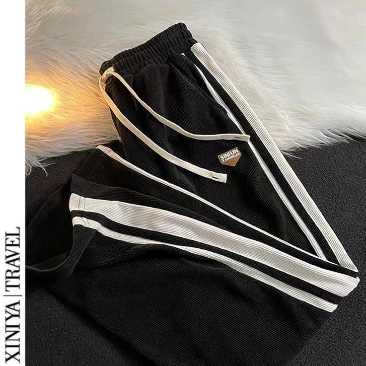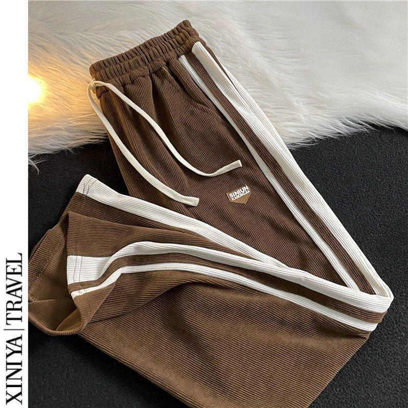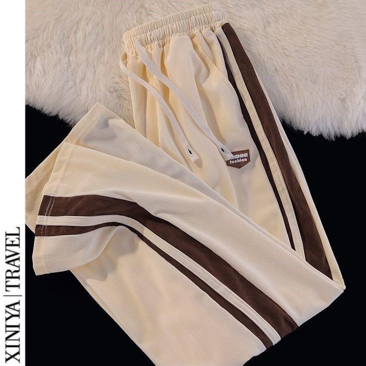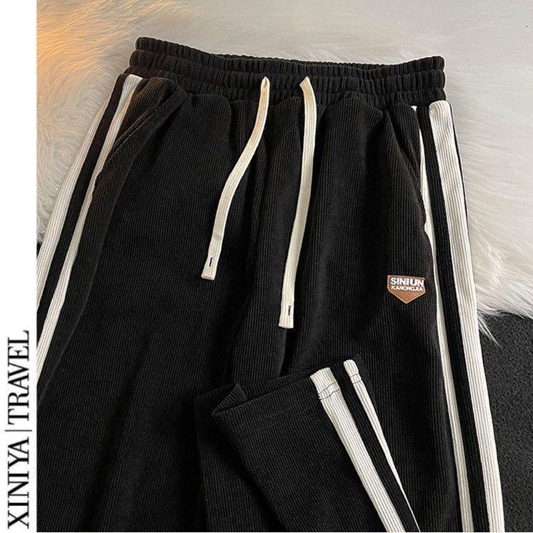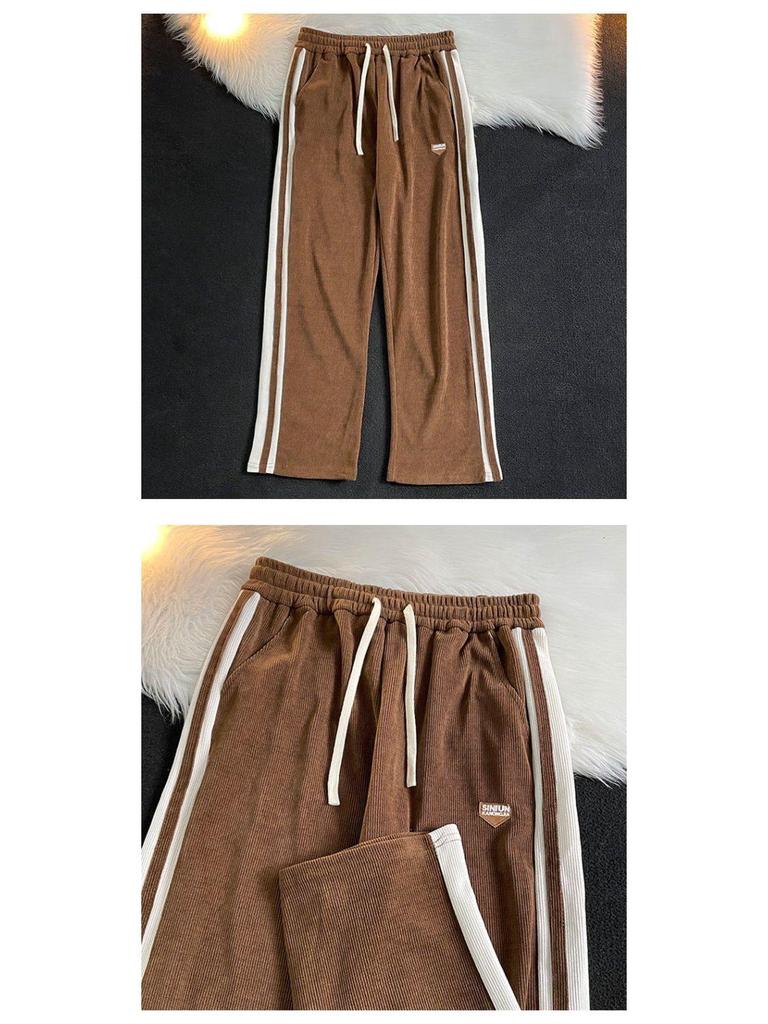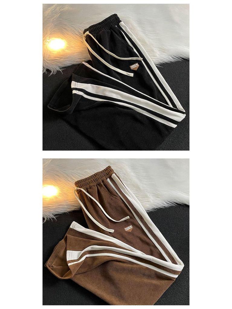 Мужские модные полосатые спортивные штаны в стиле ретро: Повседневный американский хай-стрит, чистый крой, универсальные прямые брюки широкого кроя для осени