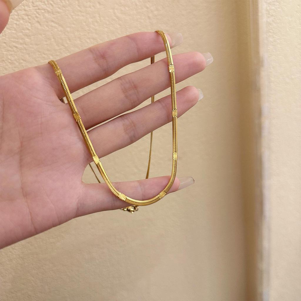 Трендовое титановое ожерелье на ключицу с тиснением 2024: Легкая роскошь, не выцветающая, простая элегантность для женщин.