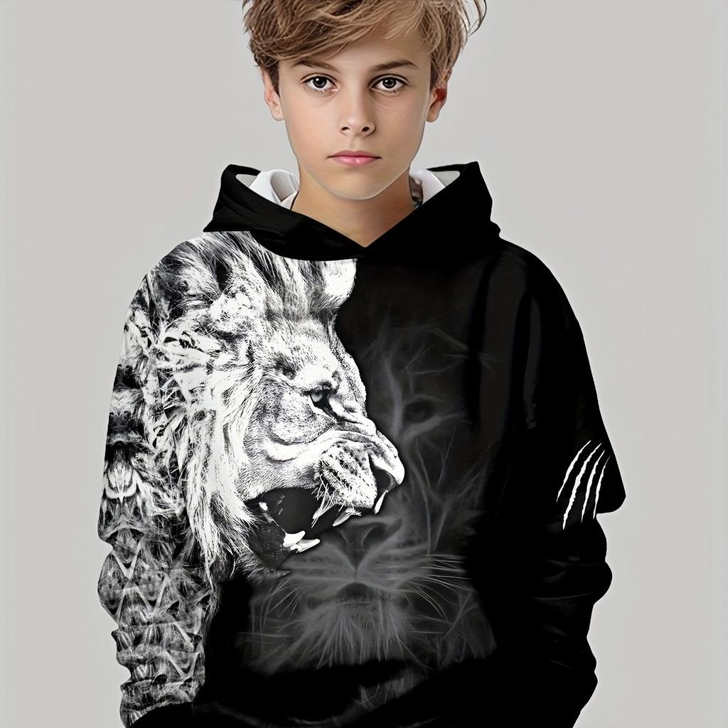 Толстовка с капюшоном для мальчиков с 3D-принтом - пуловер с контрастным черно-белым узором, толстовка для улицы с длинным рукавом — купить товар онлайн с бесплатной доставкой по всему миру!