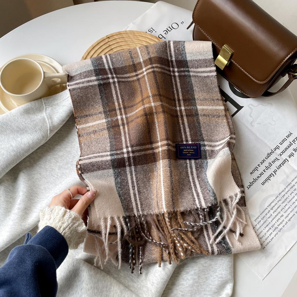 Ретро клетчатый шарф мужской и женский осенне-зимний кофейного цвета атмосферный шарф-шаль из имитации кашемира теплый шарф с бахромой