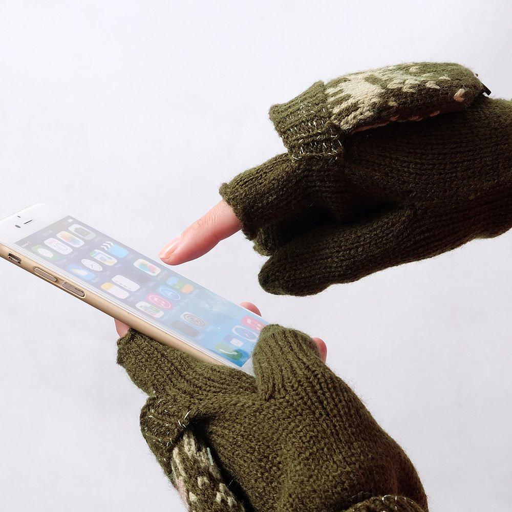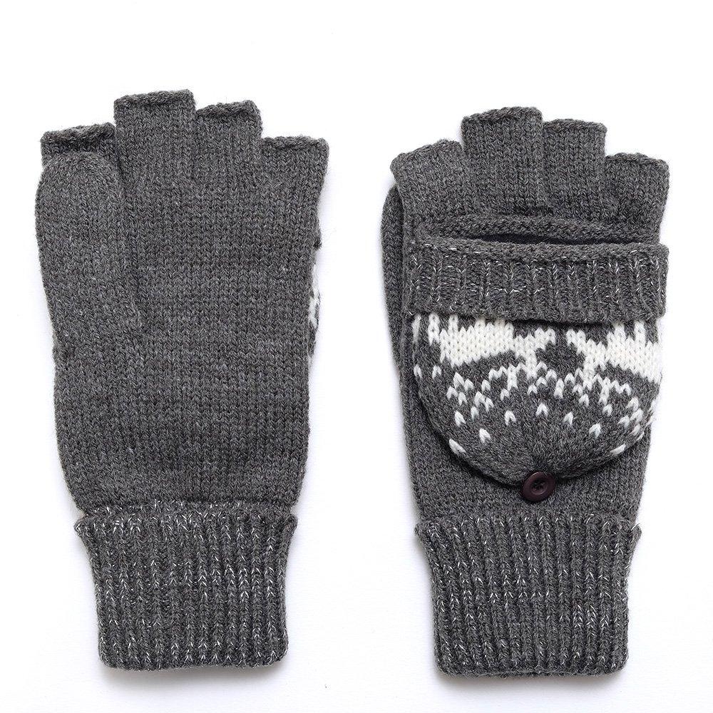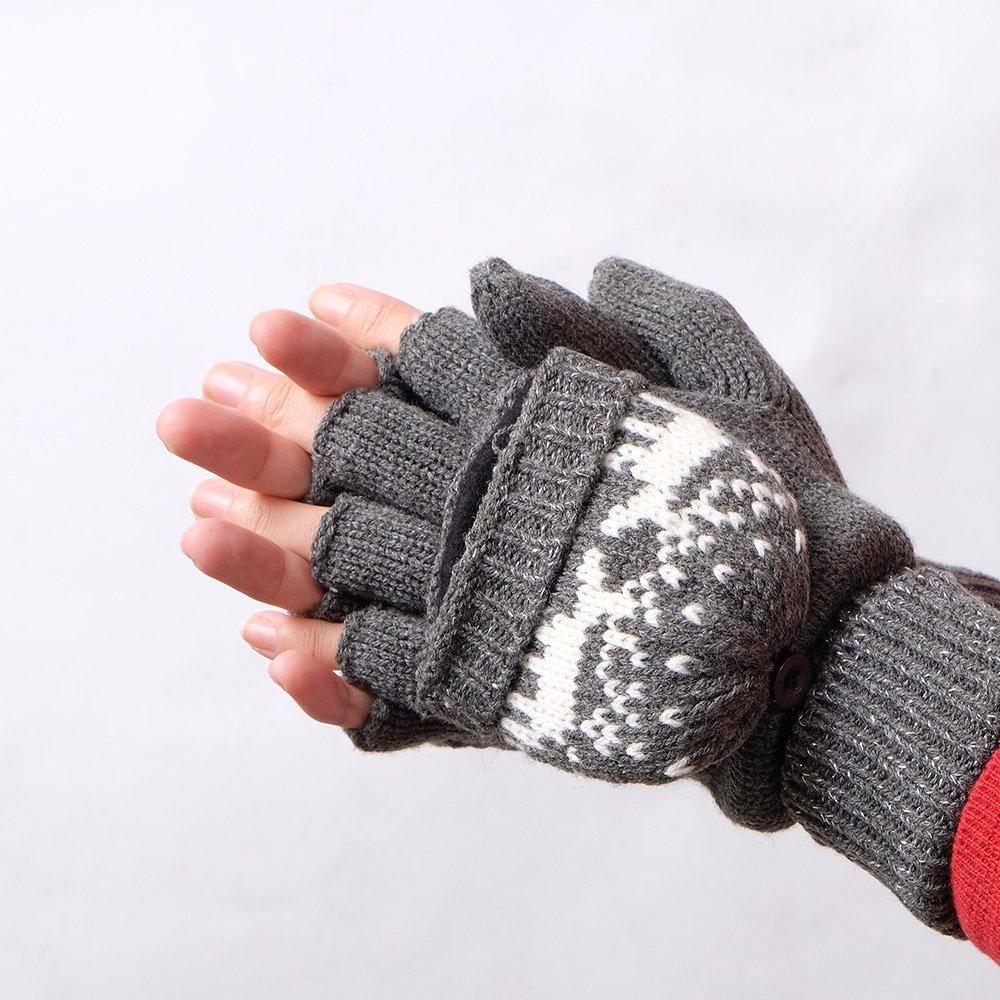 Варежки-перчатки с накидками и отворотами Зимний Олень Древесный уголь Размер F [2-way] Женские манжеты, Классика! Печать, Серый,