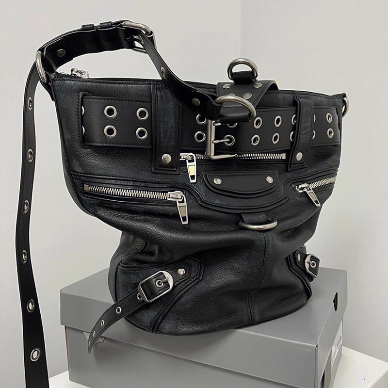 Горячие Девушки Винтажная Сумка-Ведро Большой Вместимости Черная Панк Готика Заклепки Мотоциклетная Сумка Через Плечо Сумка-Тоут из Искусственной Кожи Сумка Кроссбоди CLE