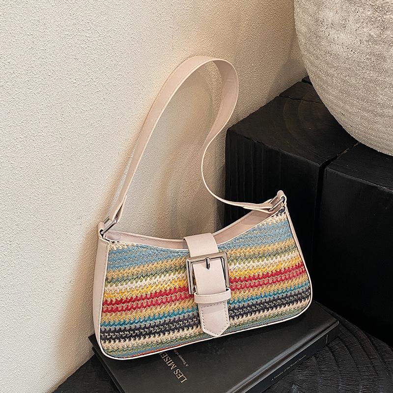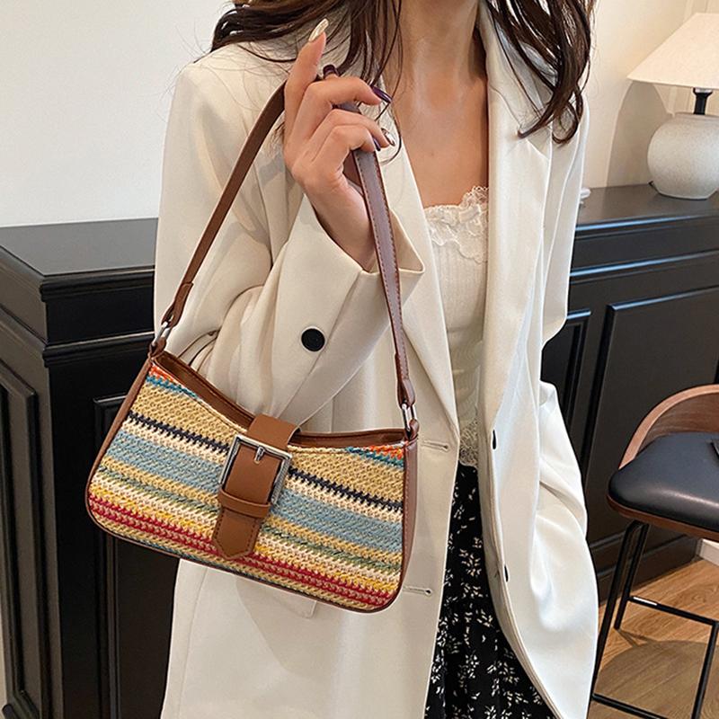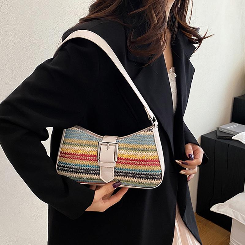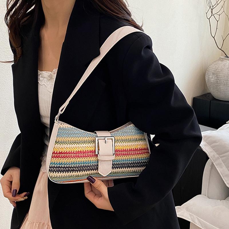 Fashion PU Leather Woven Underarm Bag Women's New Strip Design Shoulder Bag High-end Niche Trend Hobo Bag CLE