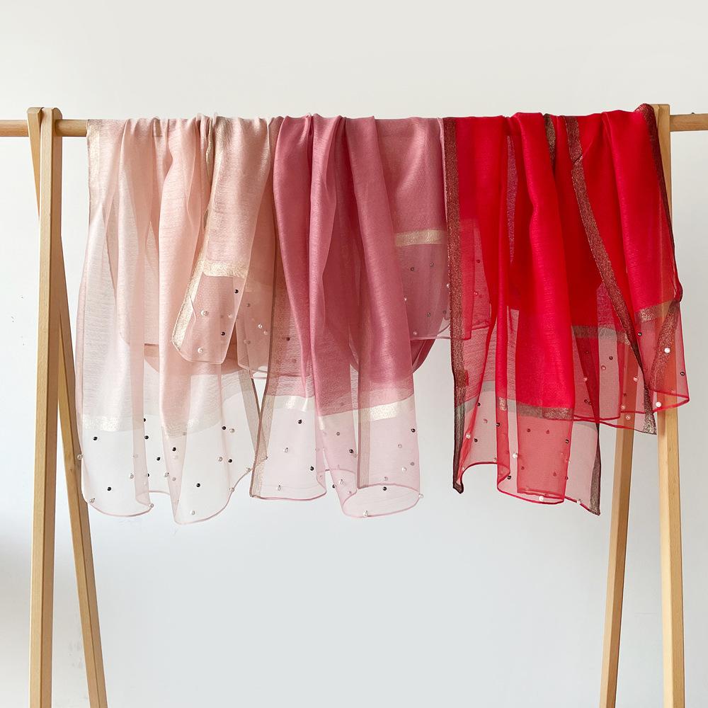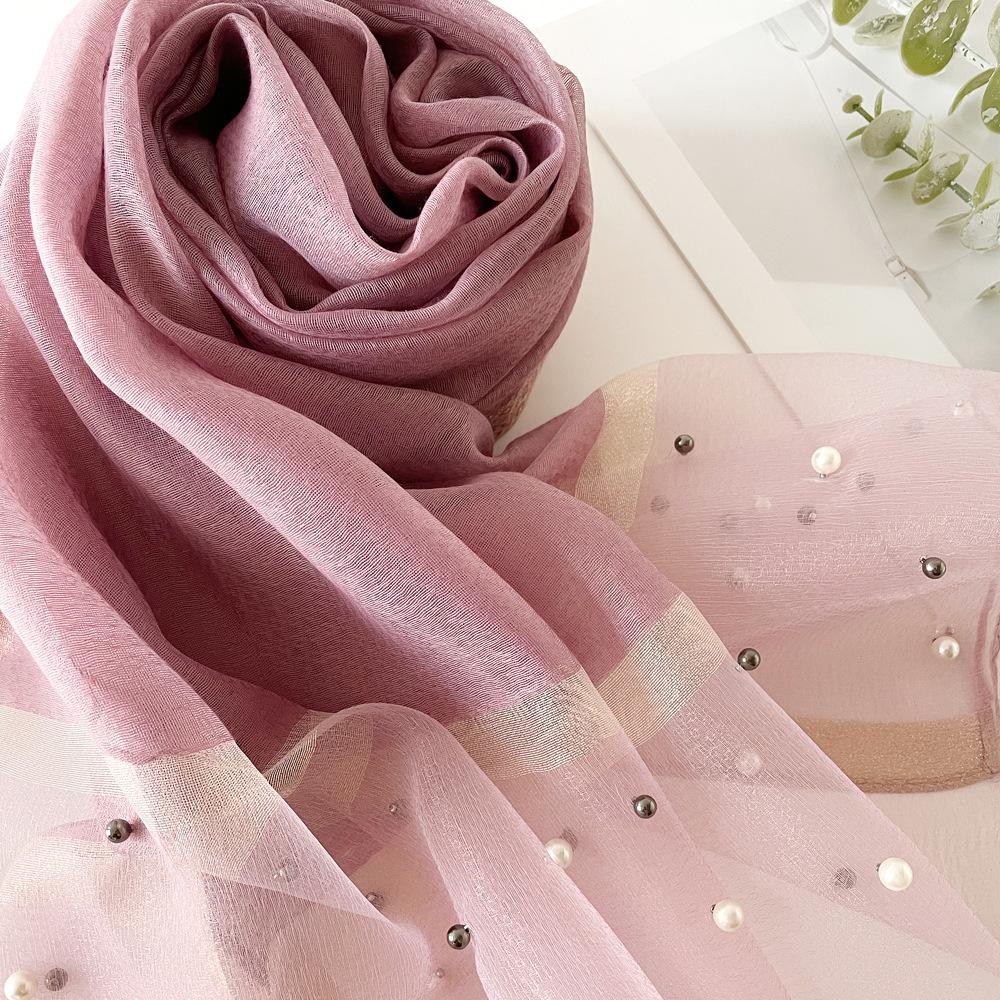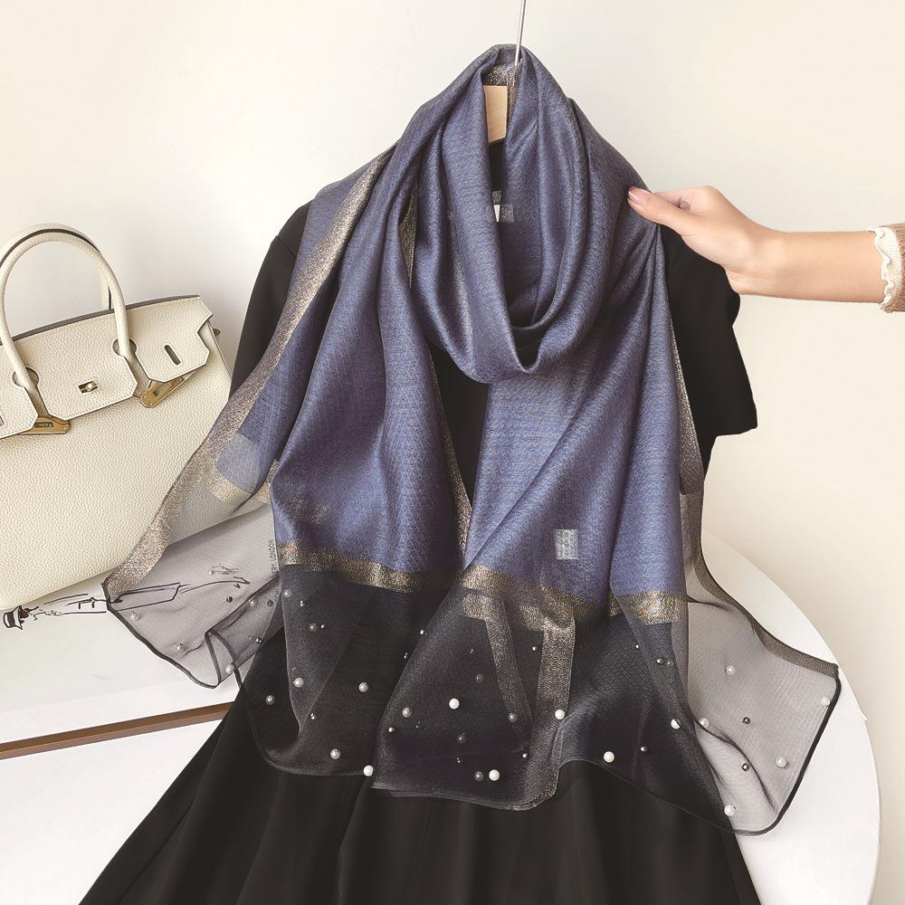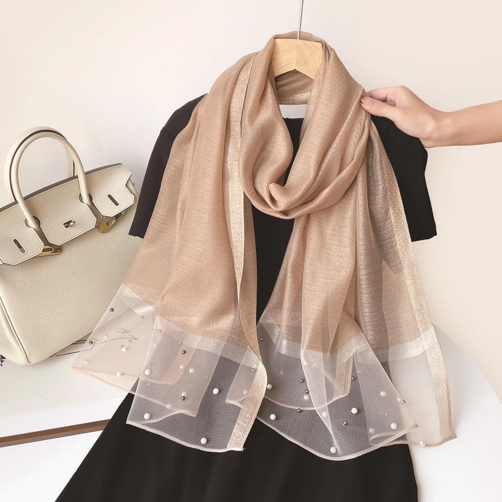 Весна новый однотонный жемчужный шелковый шарф женский искусственный шелк легкая большая шаль длинный шарф шарф