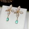 Французский придворный стиль Серьги-пусеты с прямоугольным цирконом на серебряных иглах Изысканные легкие роскошные высококлассные серьги Преувеличенные серьги Женщины
