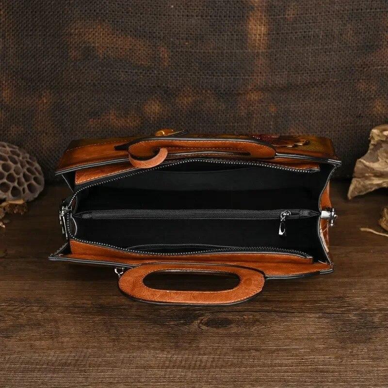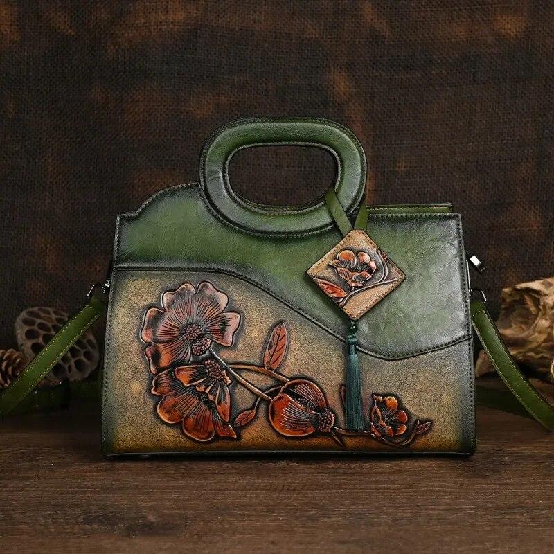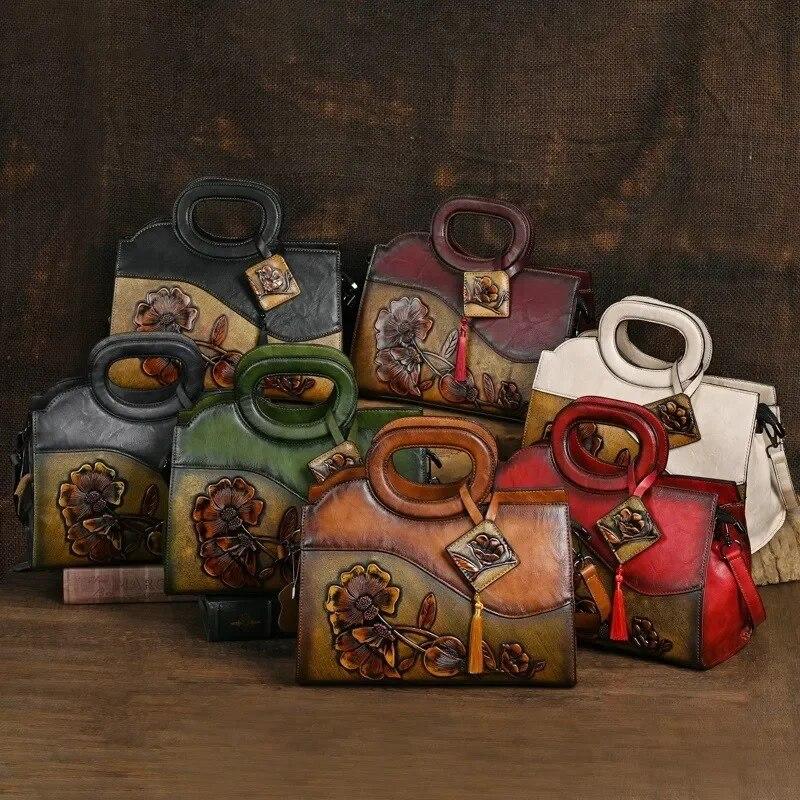 Летняя женская роскошная сумка с цветочным принтом, винтажная, ручной работы, с тиснением, женские кожаные сумки, универсальные женские сумки через плечо и кроссбоди, CLE