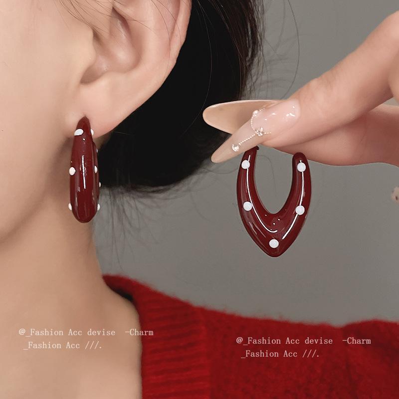 Геометрические серьги-пусеты из стали с капельной эмалью в горошек – Ретро стиль Гонконга для женской моды осень/зима.