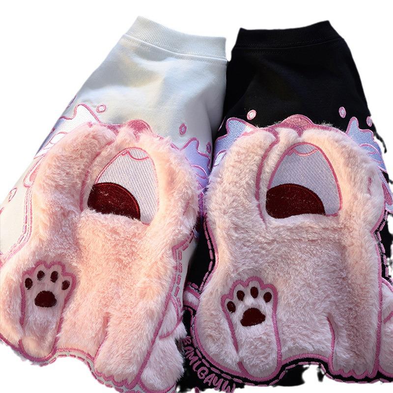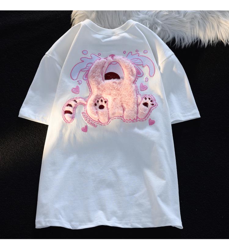 Женская футболка с коротким рукавом из хлопка с флокированным милым котенком - Шикарный летний дизайн