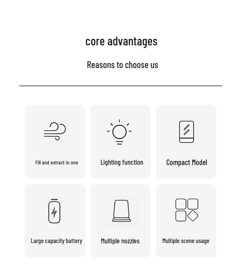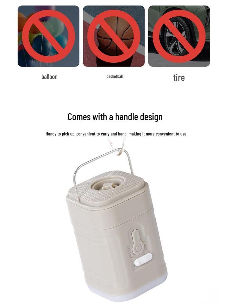 Портативный электрический воздушный насос с функцией накачивания, всасывания и освещения для кемпинговых матрасов и палаток