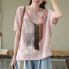 Женская футболка Летняя хлопковая футболка Мягкая Свободная С принтом Повседневная Большого размера Пуловер Футболка Топ