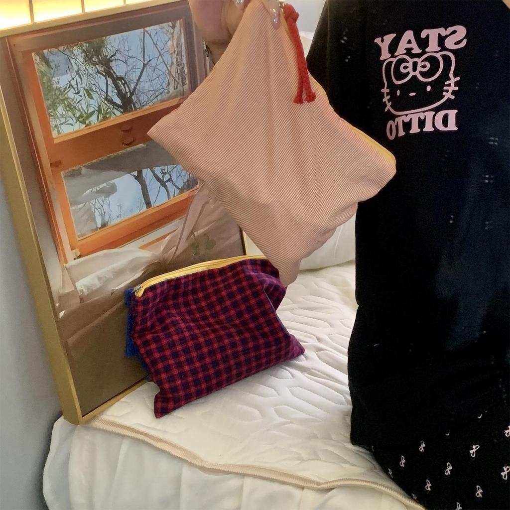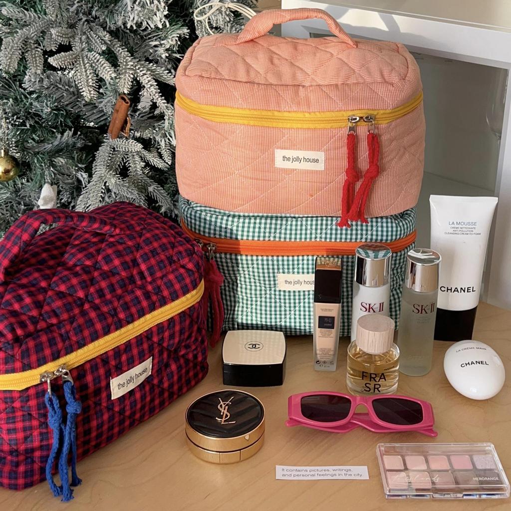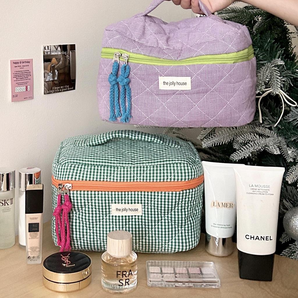Креативная клетчатая косметичка контрастного цвета: Вместительный ручной дорожный органайзер для хранения кистей для макияжа для женщин