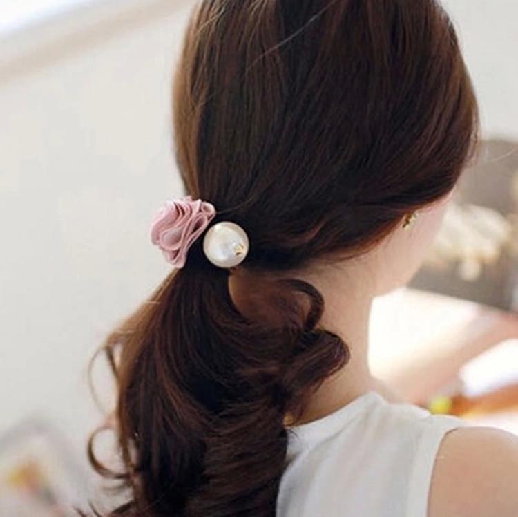 Модная тканевая роза с большой жемчужиной резинка для волос EMA