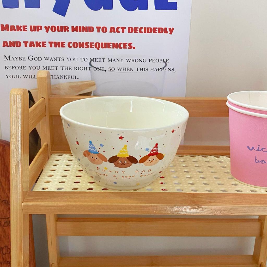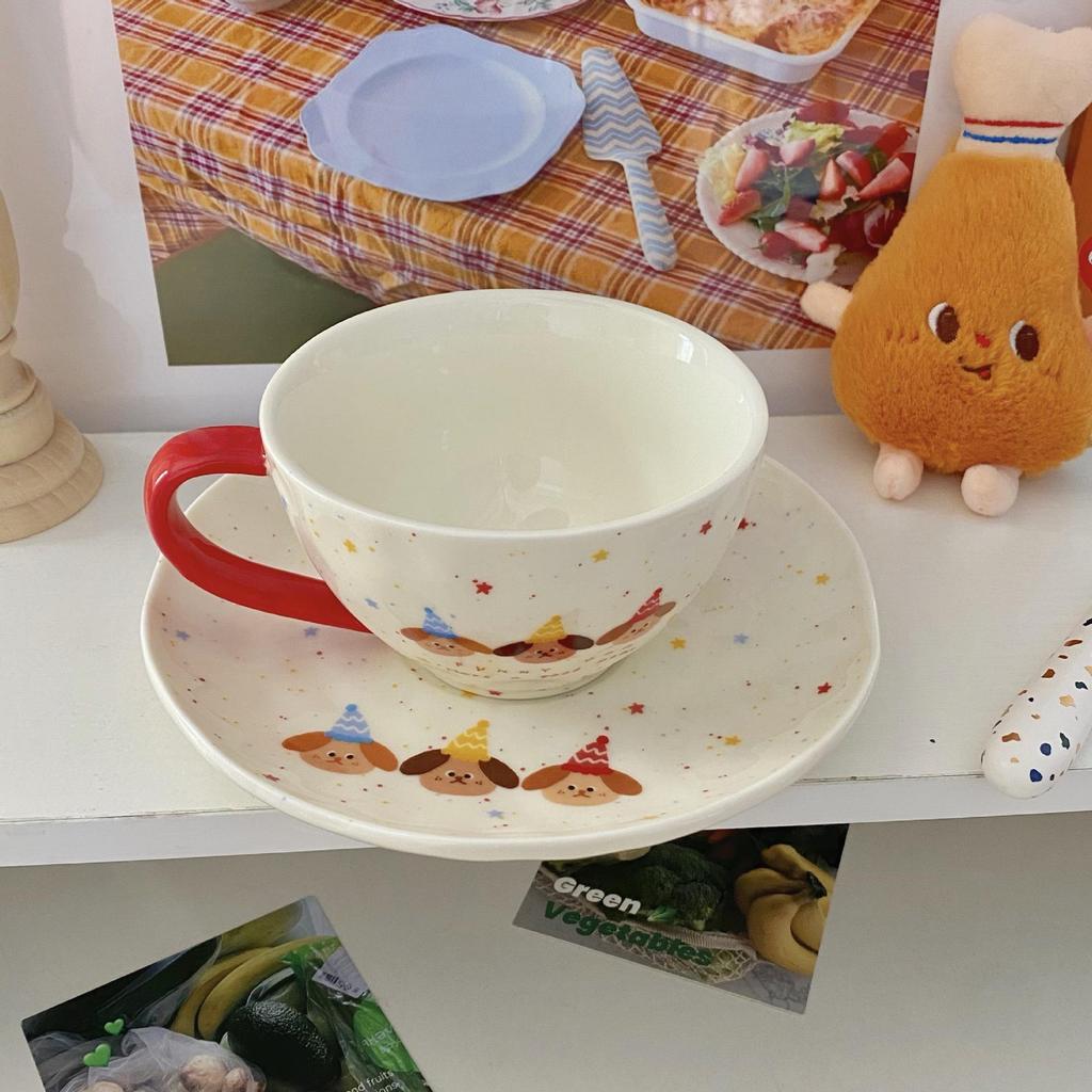 Корейский стиль Набор тарелок для щенков в горошек: Милая керамическая тарелка с отделениями, пиала для риса, чашка и блюдце.