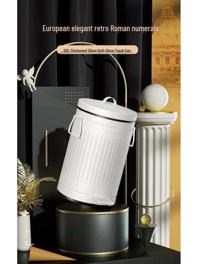 Мусорное ведро цвета слоновой кости с римским узором, бесшумной системой медленного закрывания, ножной педалью и крышкой