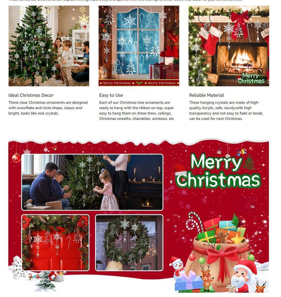 Набор из 18 акриловых рождественских украшений в виде снежинок и сосулек