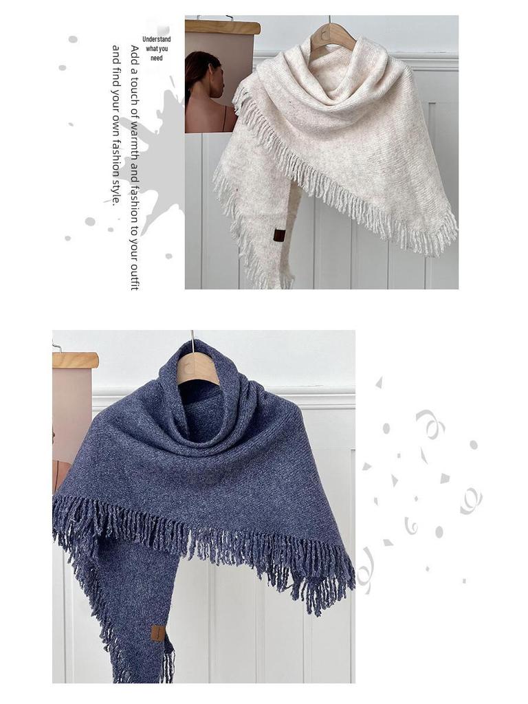 Шерстяная шаль с кисточками, треугольный шарф – Теплая, однотонная, на ощупь как кашемир, универсальная накидка.