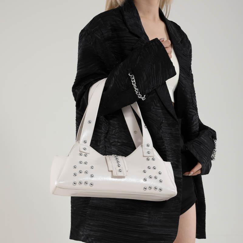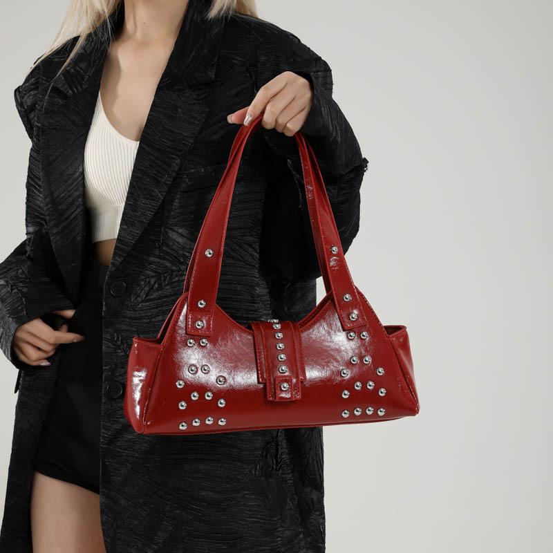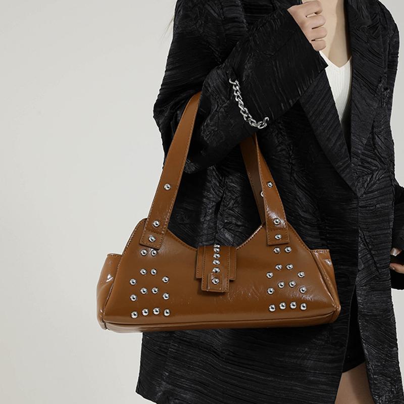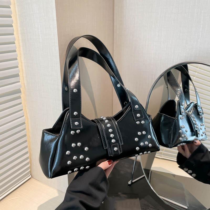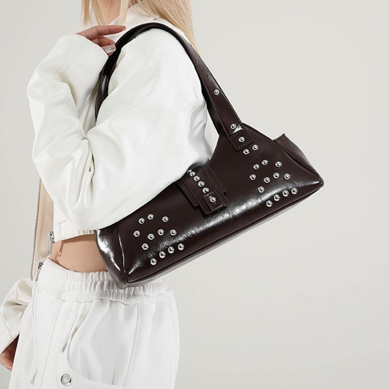 Новая ретро сумка-тоут с заклепками Модная и персонализированная наплечная сумка-подмышка для женщин Тренд Большая вместительная сумка и сумочки CLE