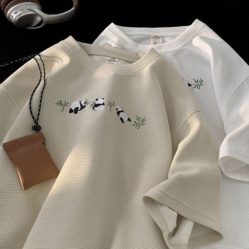 Мужская летняя футболка свободного кроя с коротким рукавом и вафельной текстурой с принтом панды — купить товар онлайн с бесплатной доставкой по всему миру!