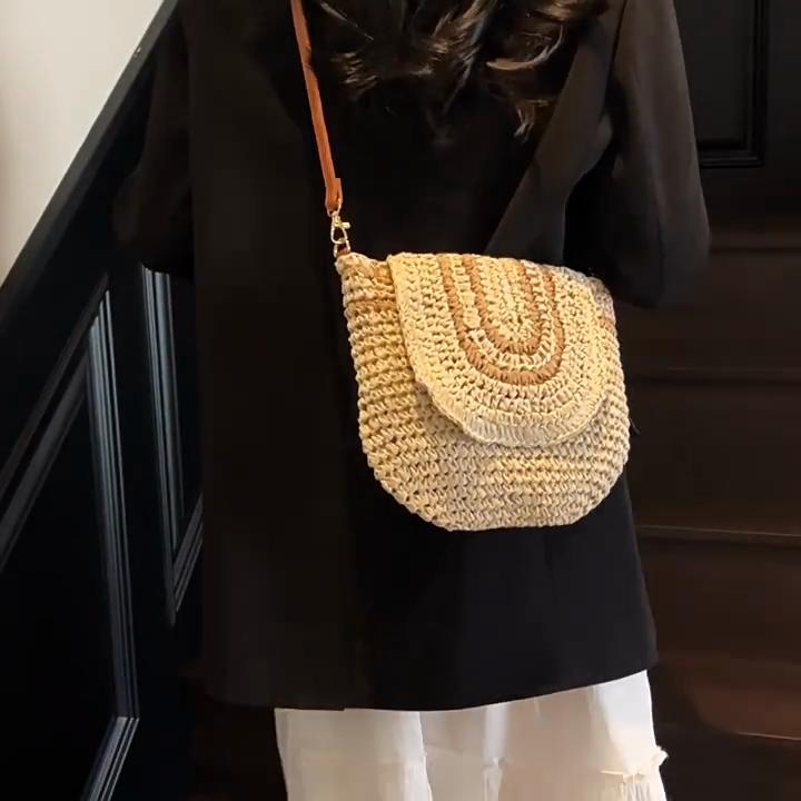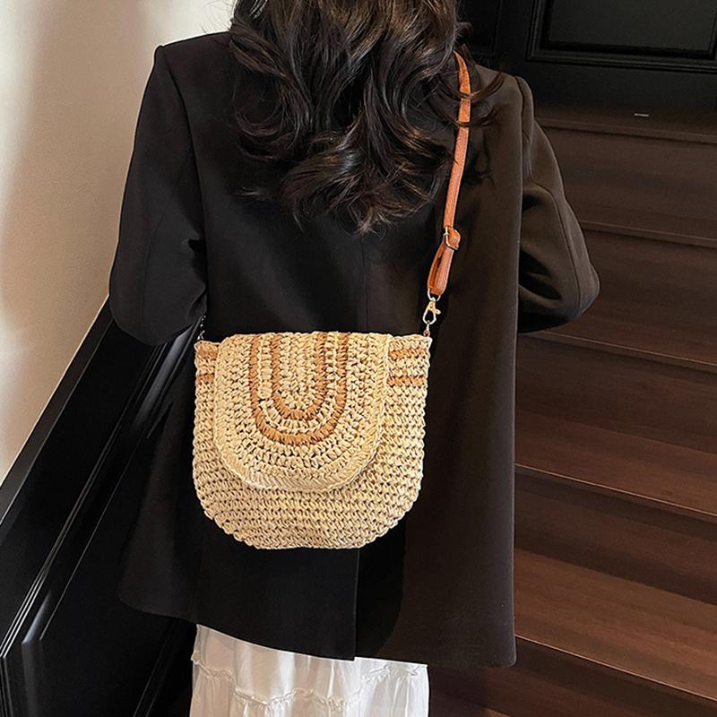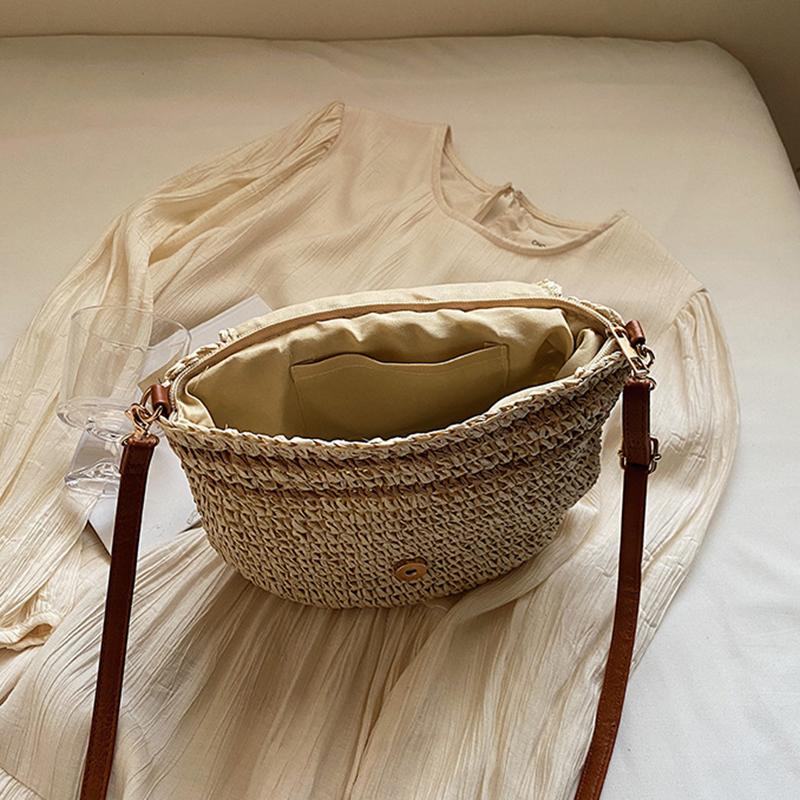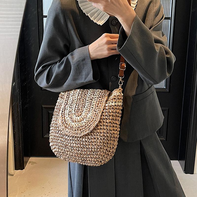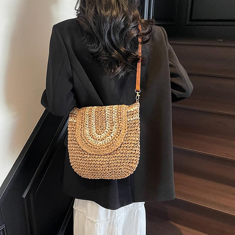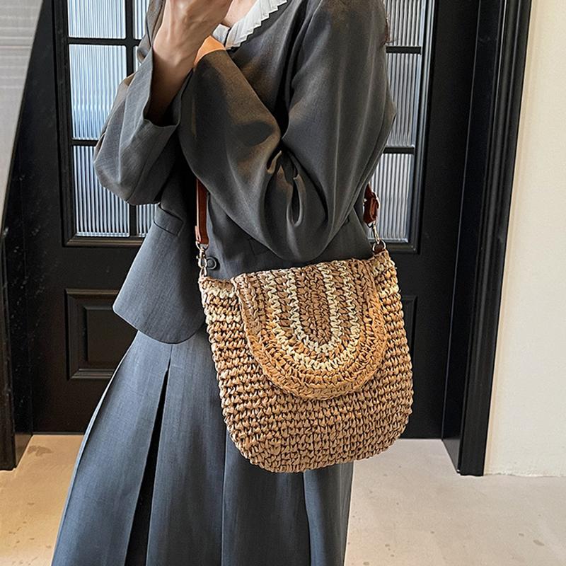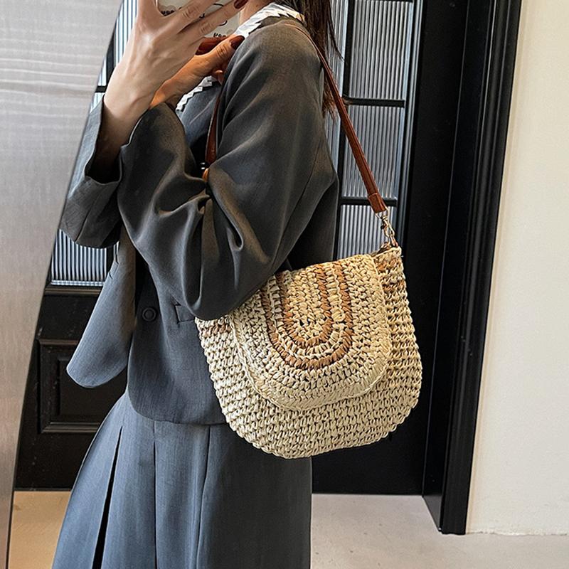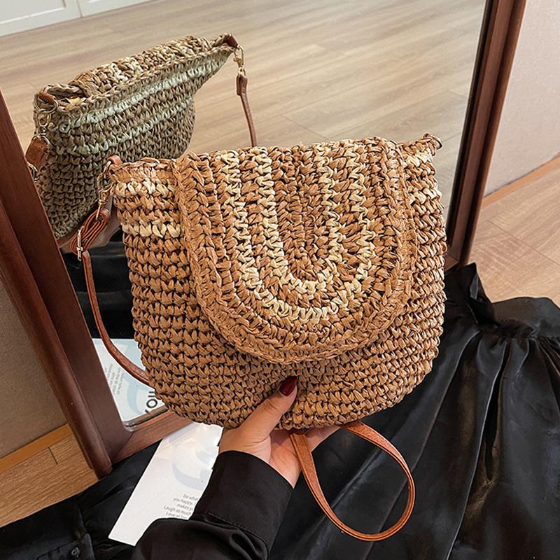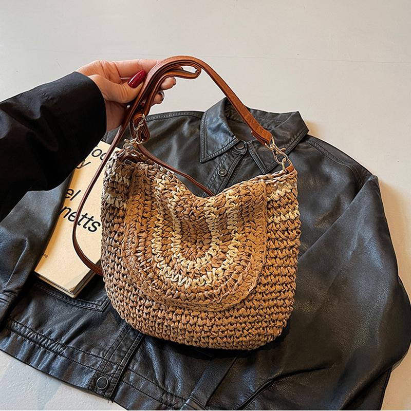 Большая плетеная соломенная модная сумка-клатч через плечо, летняя пляжная плетеная ручной работы, вместительная сумка-кроссбоди для повседневного наряда CLE