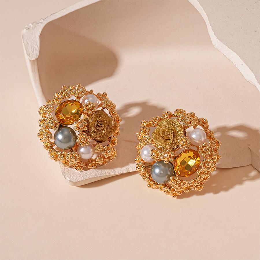 Винтажные металлические серьги-пусеты из стерлингового серебра с цветком из страз и искусственного жемчуга - стиль французского двора для женщин