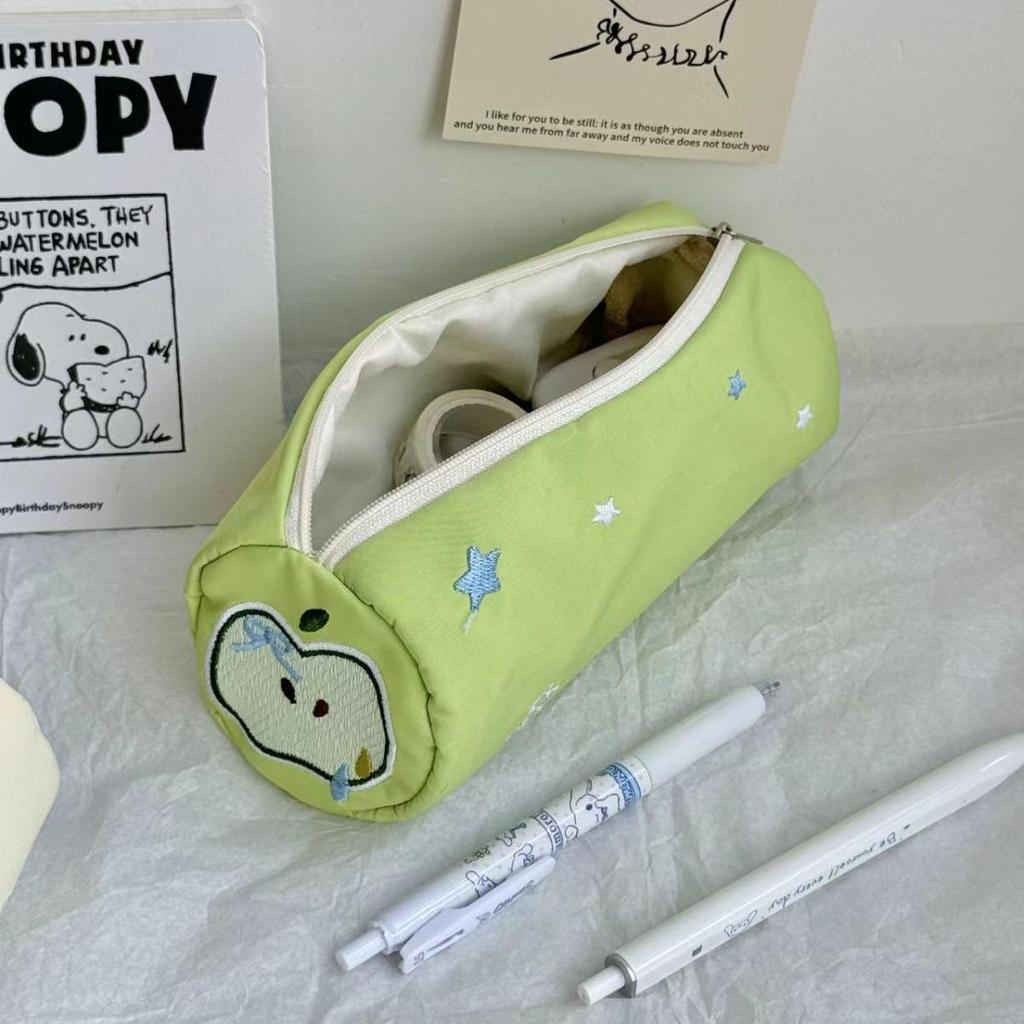 Вышитый пенал «Зеленое яблоко» - Милая сумка для хранения карандашей большой вместимости