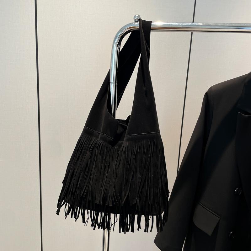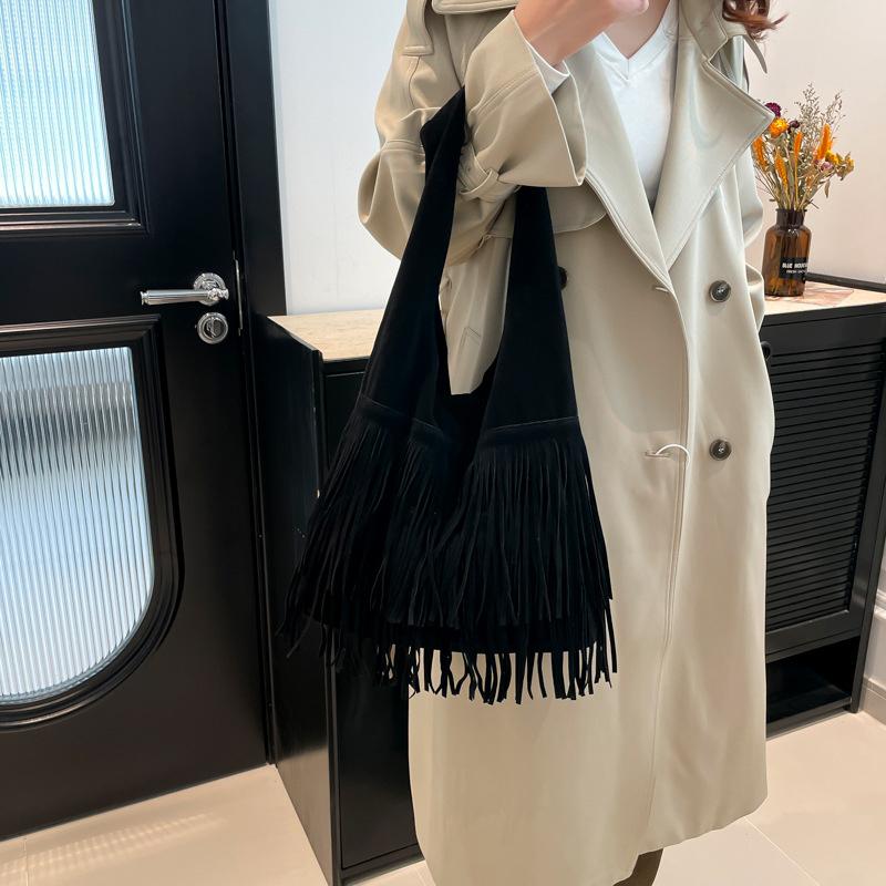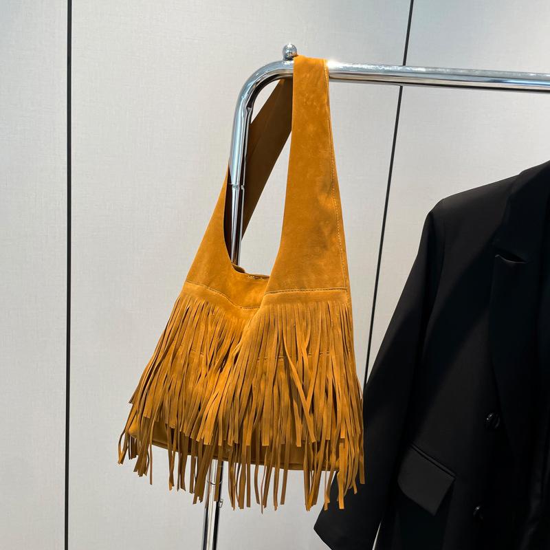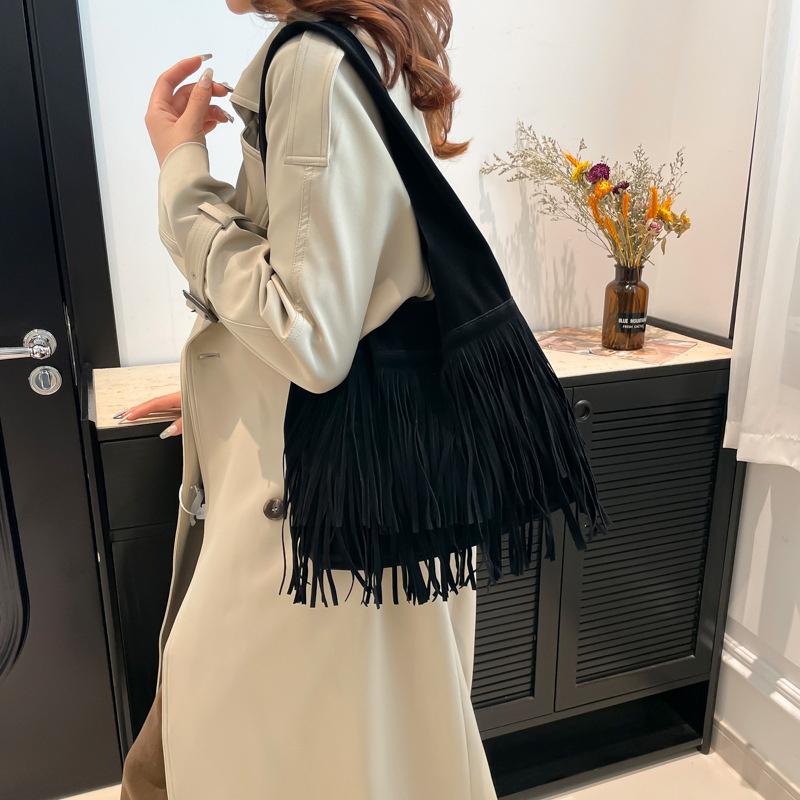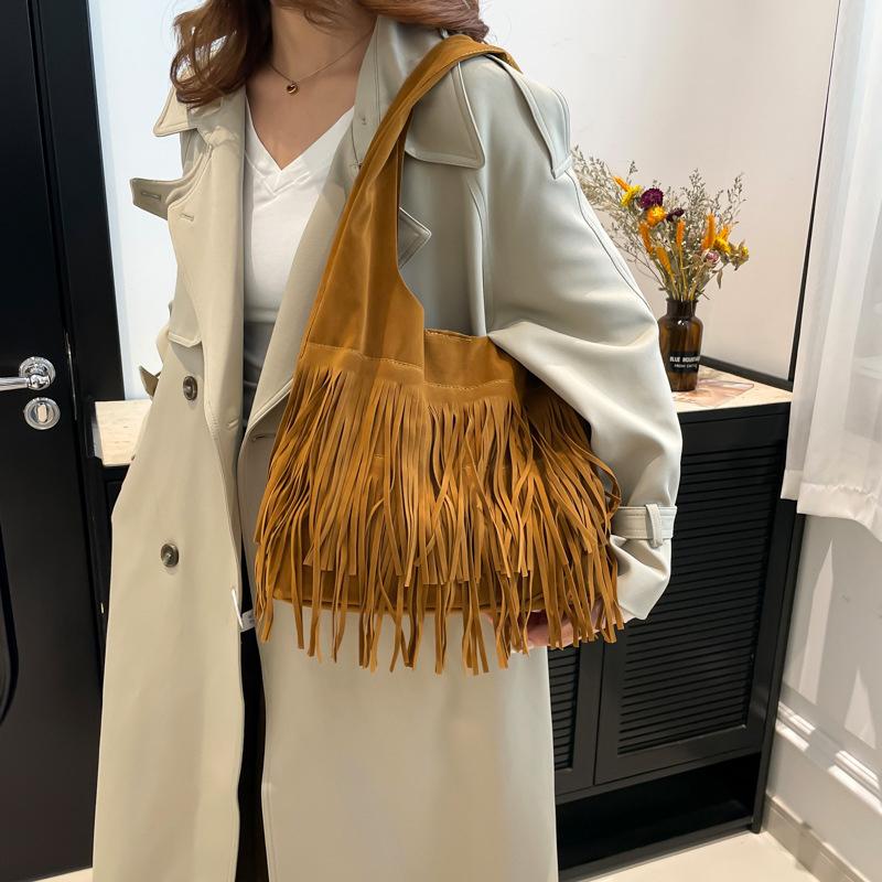Женская матовая сумка на плечо с кисточками, сумка под мышку с бахромой из искусственной замши, большая вместимость, дорожная сумка-тоут, женская сумка для покупок CLE