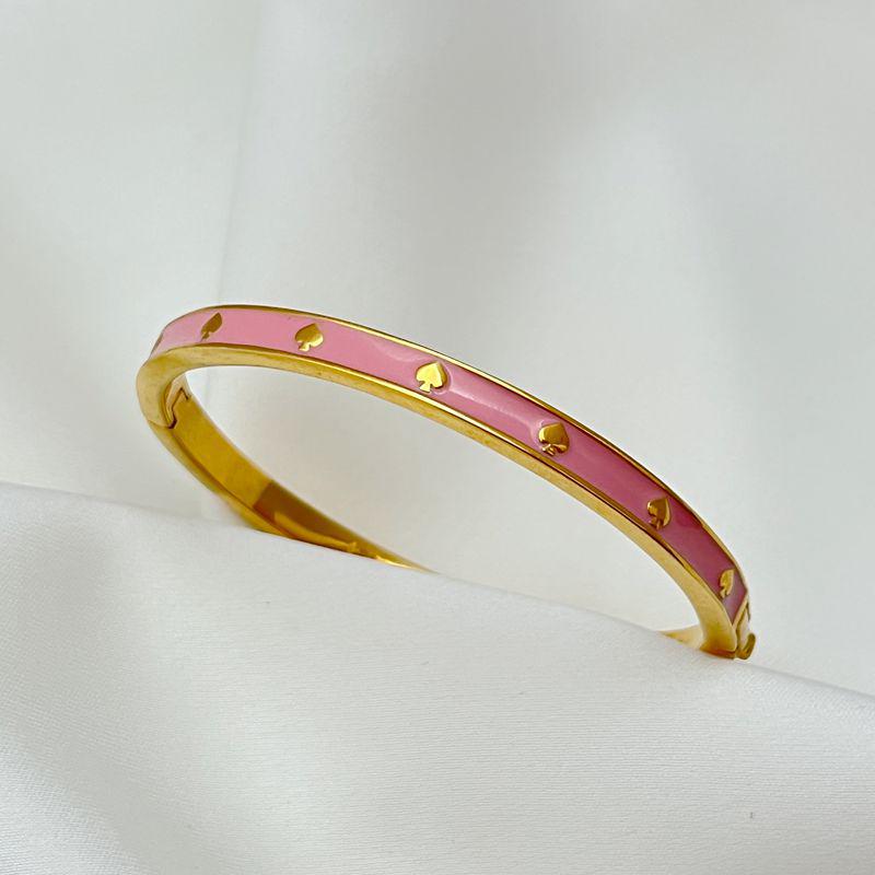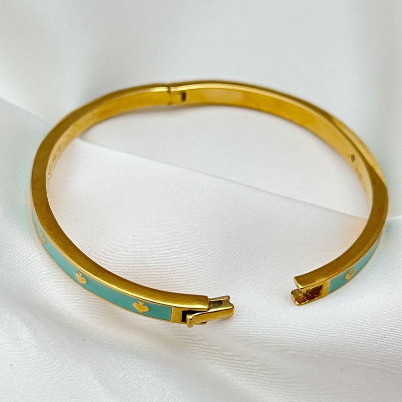 Элегантный эмалевый золотистый браслет-бангл в форме сердца со скрытой застежкой
