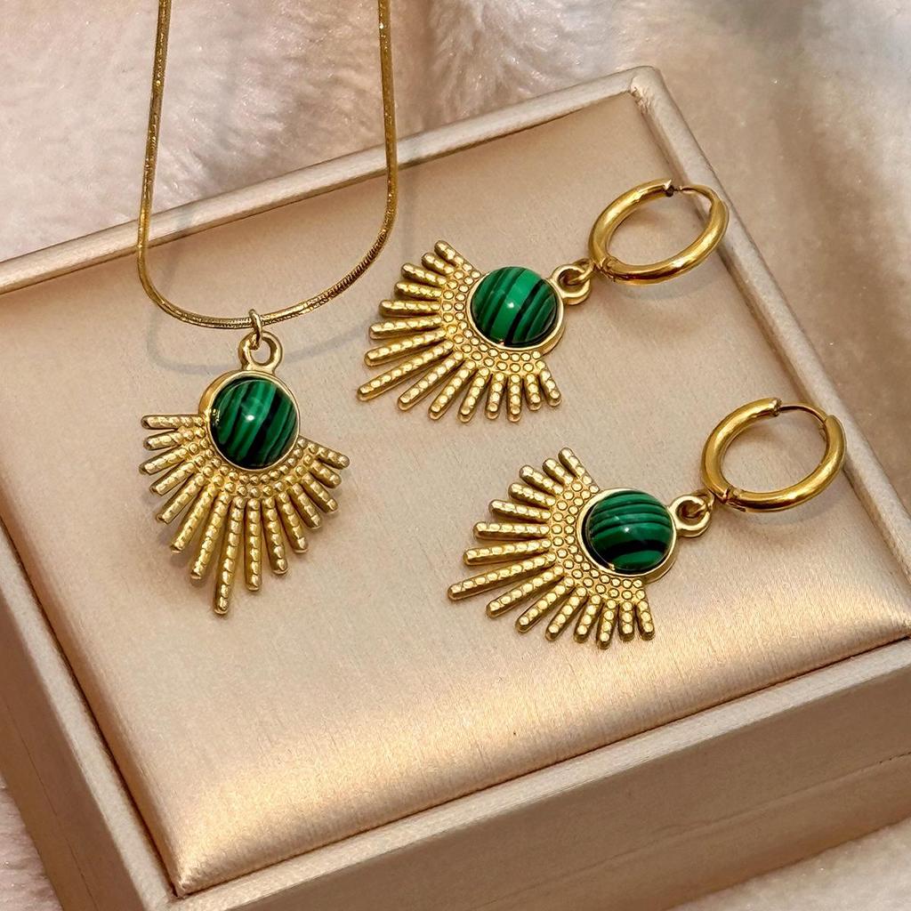 Ожерелье-подвеска «Солнце» из майардской малахитовой титановой стали - Универсальная легкая роскошь для женщин, Идеально для осенне-зимних аксессуаров