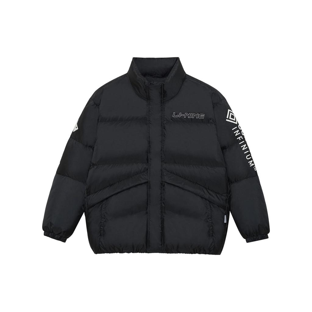Li-Ning Пуховик на молнии с боковым принтом, мужская верхняя одежда, черный AYMS243-1