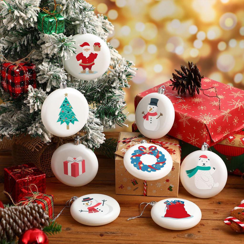 - 【В комплект входит】: 12 Белых плоских рождественских декоративных шаров с подвесными веревками. Каждый пустой декоративный шар имеет диаметр 8 см/3,15 дюйма. Количество и размер удовлетворяют ваши различные потребности в украшении