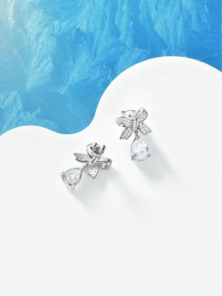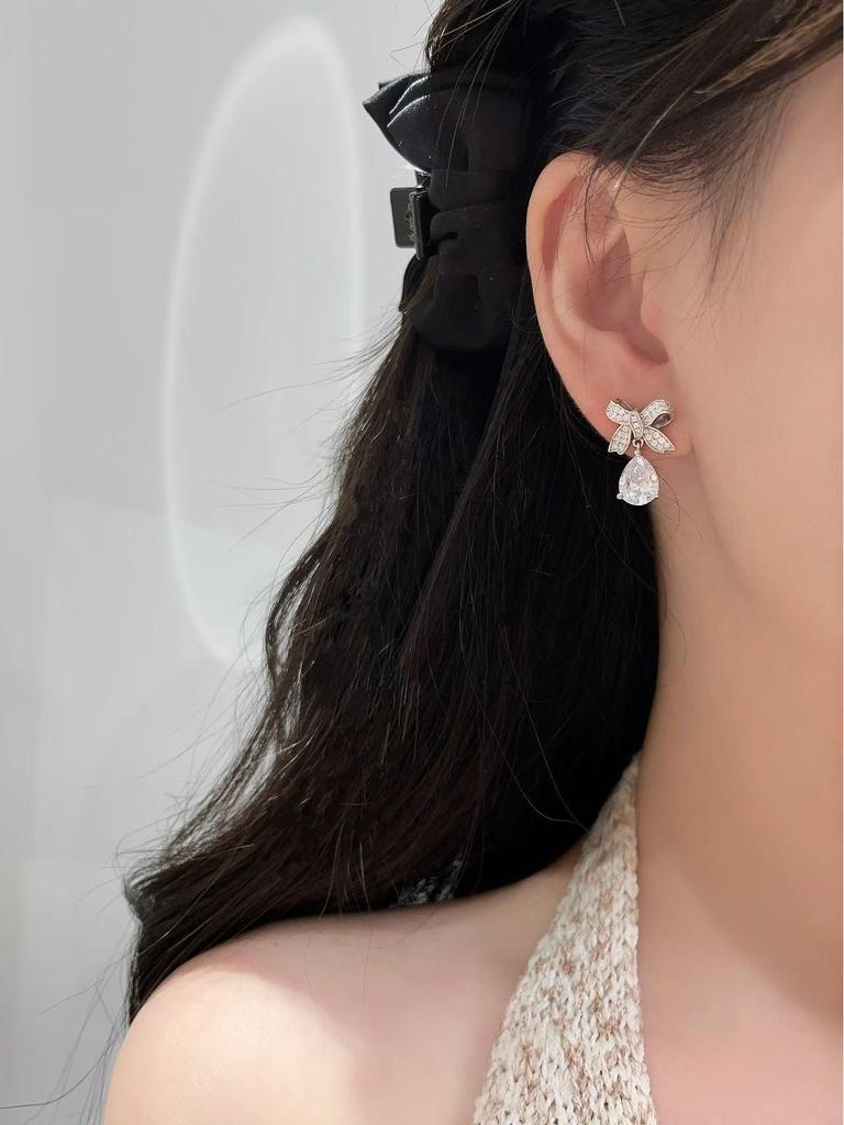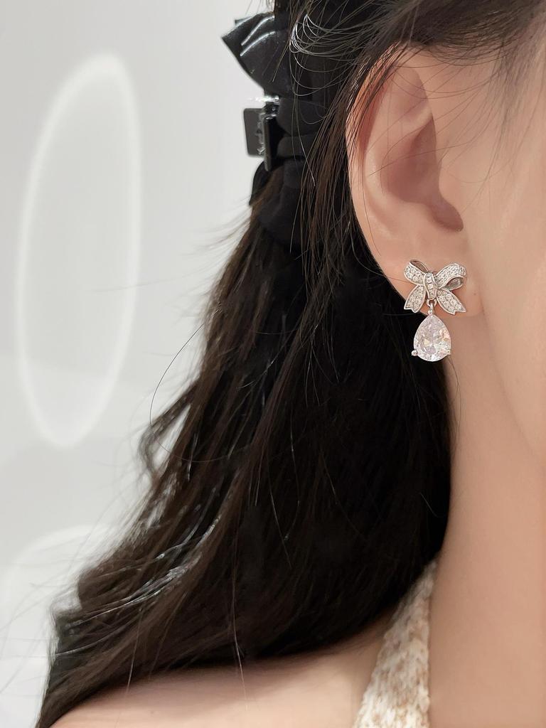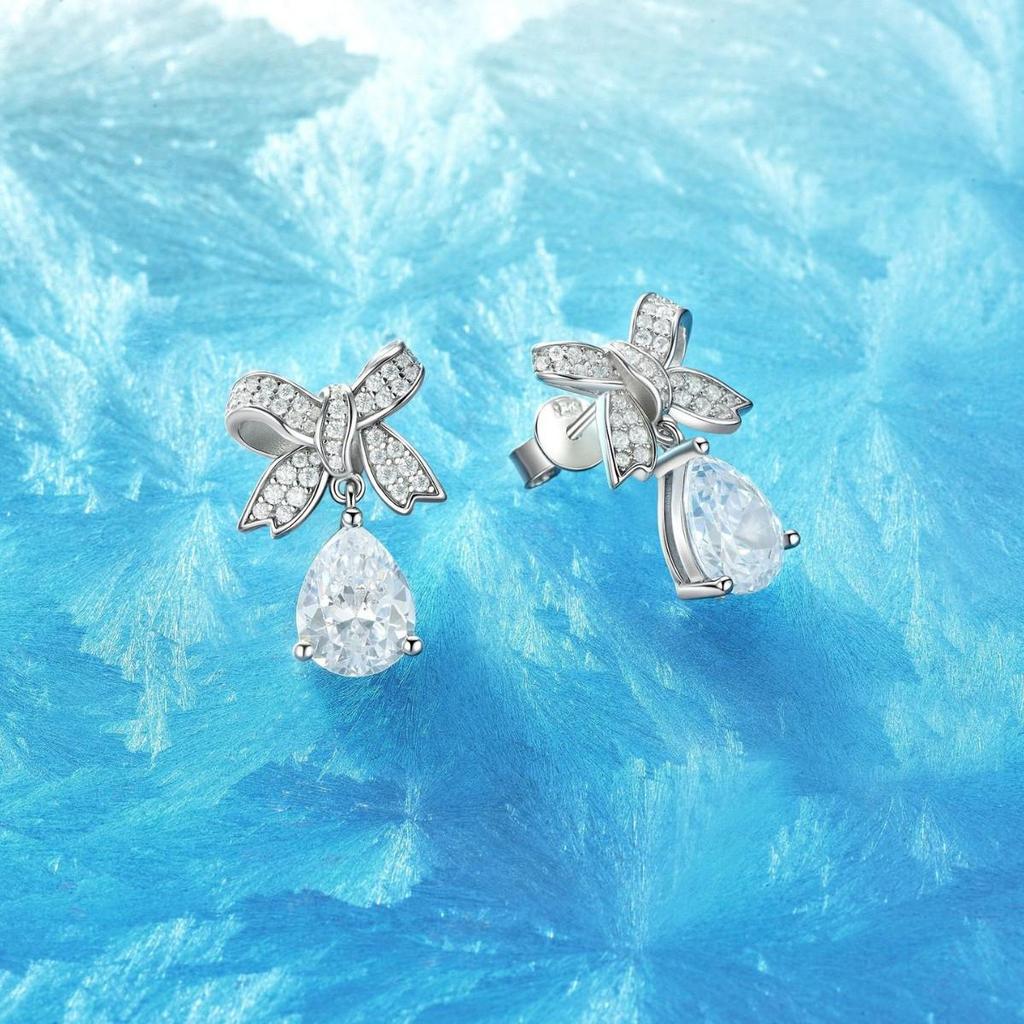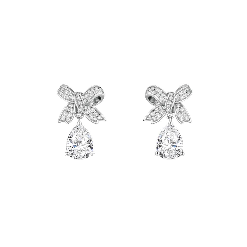 Элегантные серьги-бантики и серьги-капельки из серебра 925 пробы с бриллиантами
