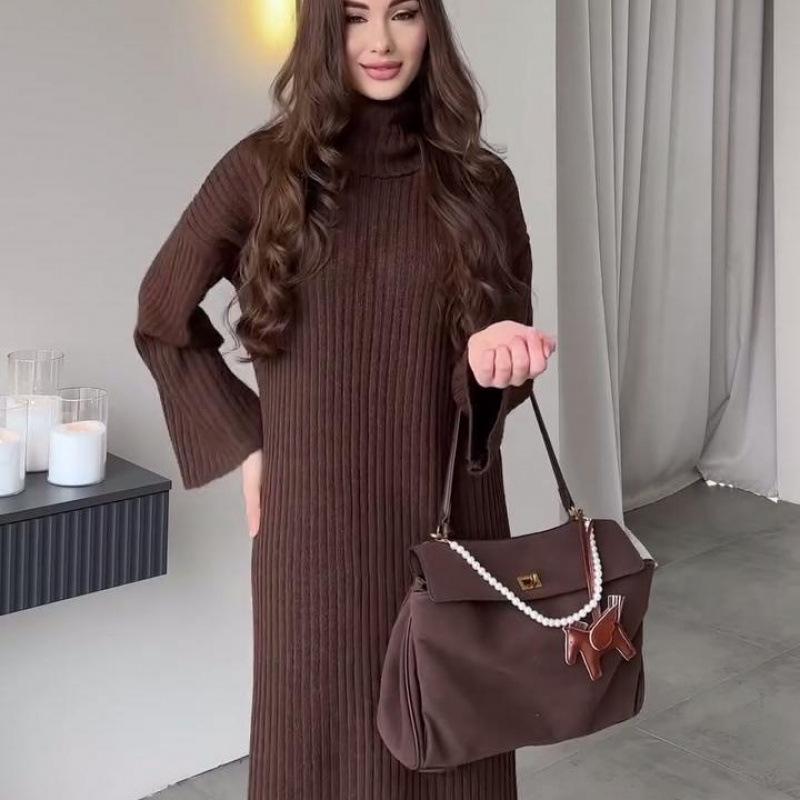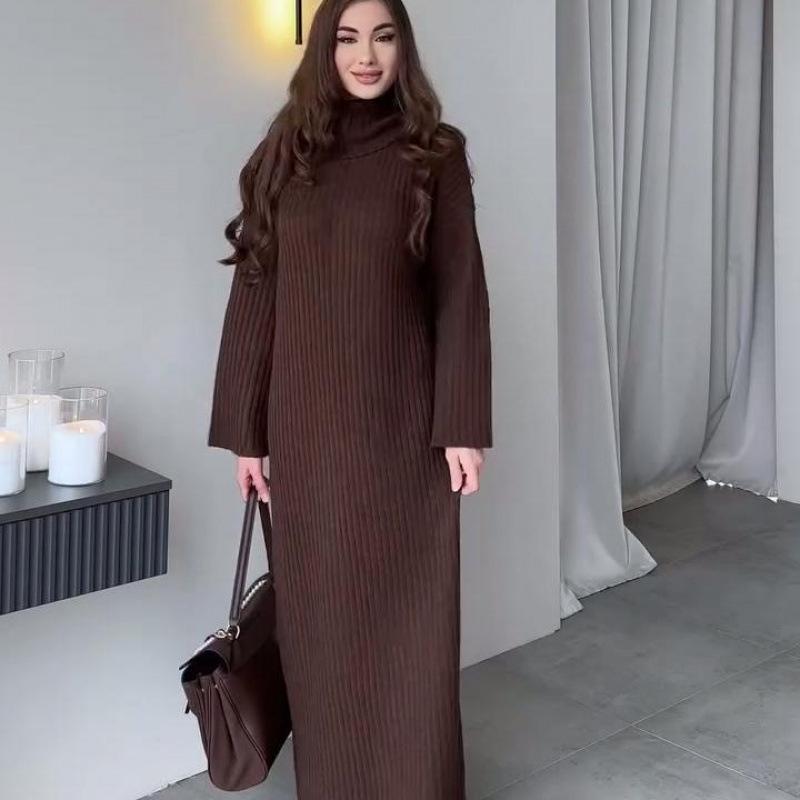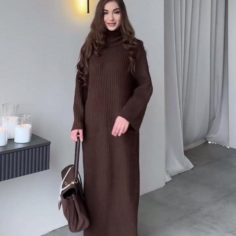Представляем стильное и уютное дополнение к вашему осенне-зимнему гардеробу. Это трикотажное платье-свитер с высоким воротом однотонной расцветки изготовлено из высококачественного полиэстерового материала, обеспечивающего как комфорт, так и тепло.. Свободного кроя, он элегантно драпируется, обеспечивая свободу движений.. Длинные рукава добавляют дополнительный слой тепла, что делает его идеальным выбором для прохладной погоды.. Идеальное для сочетания с вашими любимыми ботинками или леггинсами, это универсальное платье-свитер без труда сочетает в себе функциональность и неподвластную времени моду.