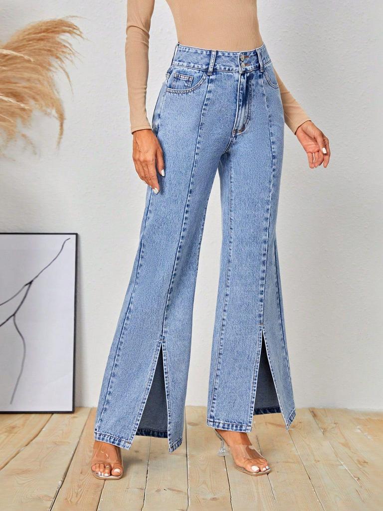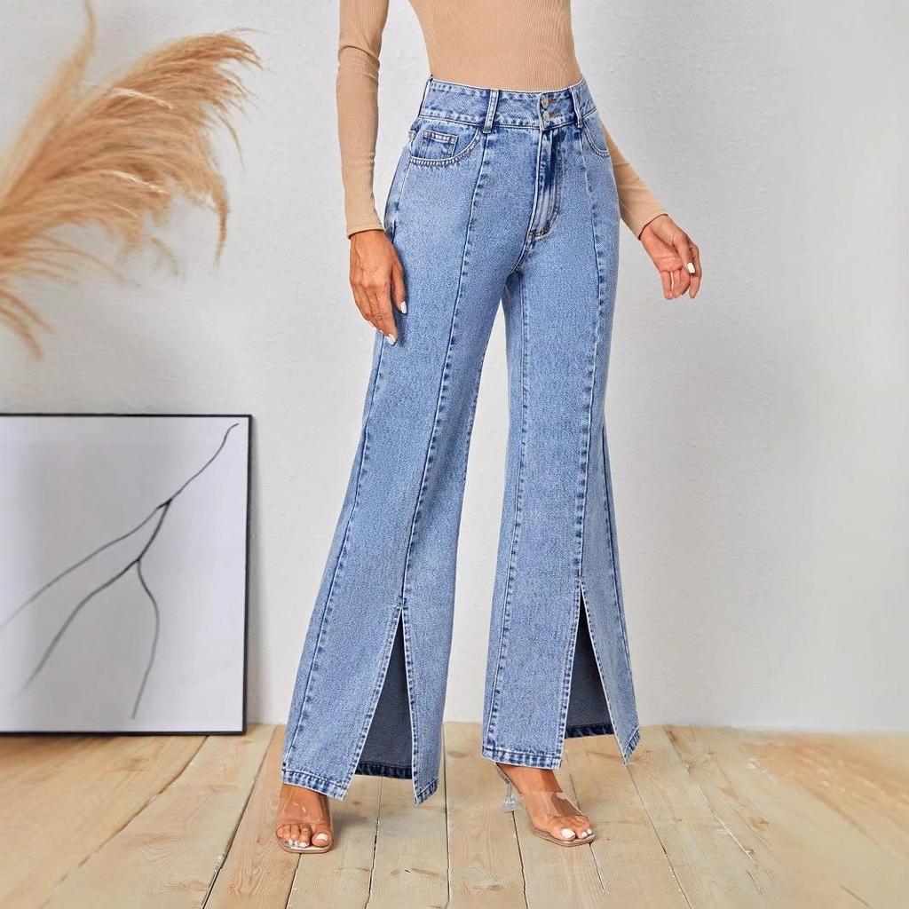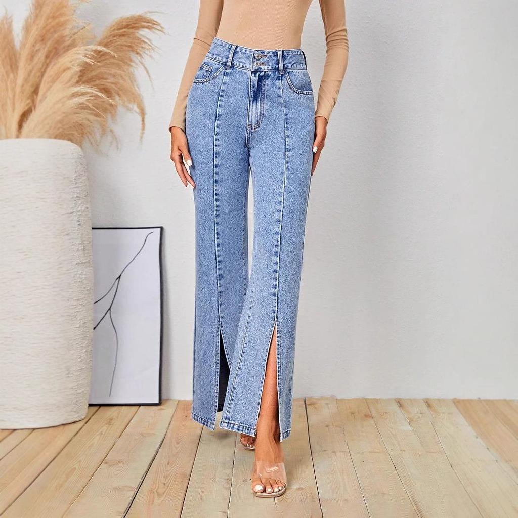 Европейский и американский INS стиль женские облегающие джинсовые длинные брюки с разрезом спереди