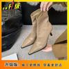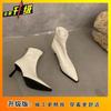 Стиль знаменитостей универсальные и ботильоны 2025 осень и зима новая нишевая обувь на высоком каблуке с острым носком эластичные тонкие короткие ботинки женская обувь