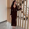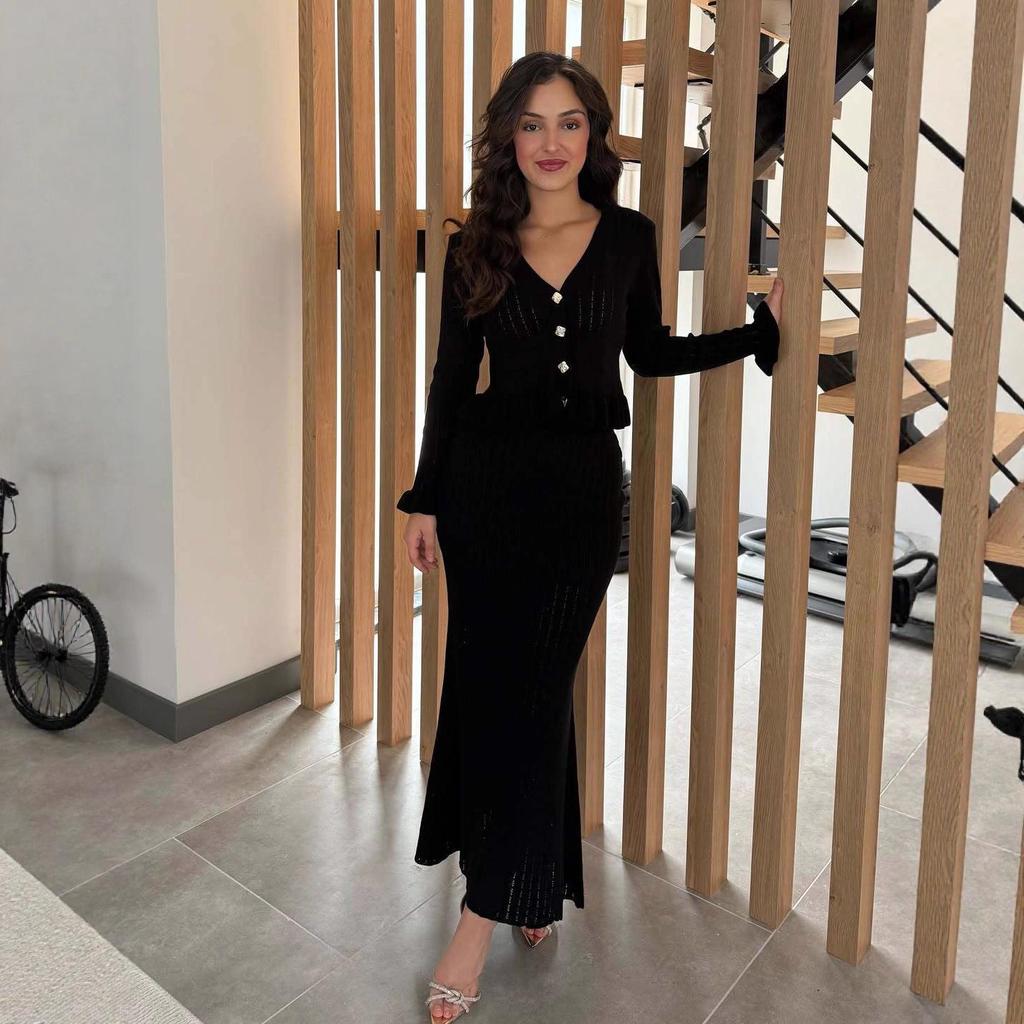 Женский вязаный комплект с V-образным вырезом и юбкой миди на осень 2025 года — купить товар онлайн с бесплатной доставкой по всему миру!